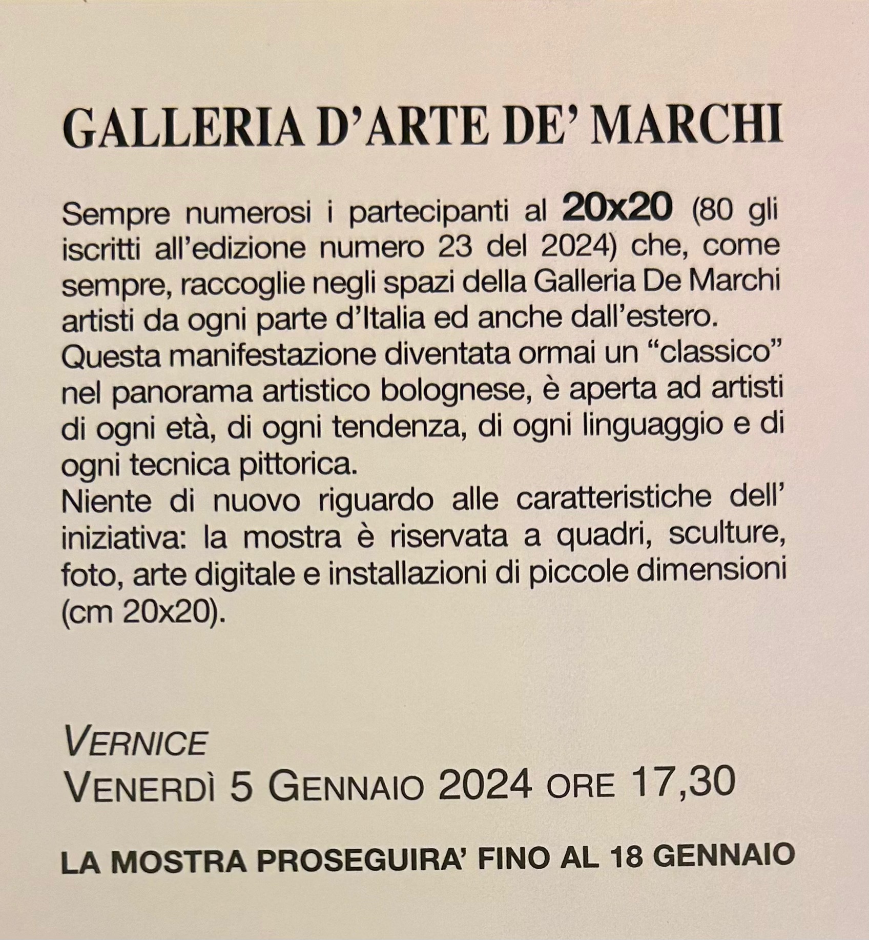 Mostra di quadri, sculture, foto, arte digitale e installazioni di piccole dimensioni(cm 20×20).