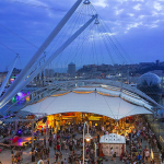 Suq è una parola araba che significa mercato, quindi luogo di convergenza e di scambio; per conoscere gli altri è indispensabile conoscere la loro cultura, le loro tradizioni, assaggiare cibi diversi, condividere emozioni intorno a un tavolo. Questa l’idea che ha ispirato Valentina Arcuri e Carla Peirolero nel dare vita al Suq Festival, con la scenografia teatrale, firmata da Luca Antonucci, che riproduce un grande bazar dei popoli, con al centro il palcoscenico per gli spettacoli e tutto intorno spazi per artigianato dal mondo, cucine etniche, progetti solidali. Vera calamita e attrazione del Festival è l’offerta dei tanti cibi da gustare, nell’edizione 2024 sono 13 le cucine: senegalese, indiana, keniota, peruviana, messicana, persiana, vegana, siriana, araba, nordeuropea, mediorientale, sud est asiatica, tunisina.