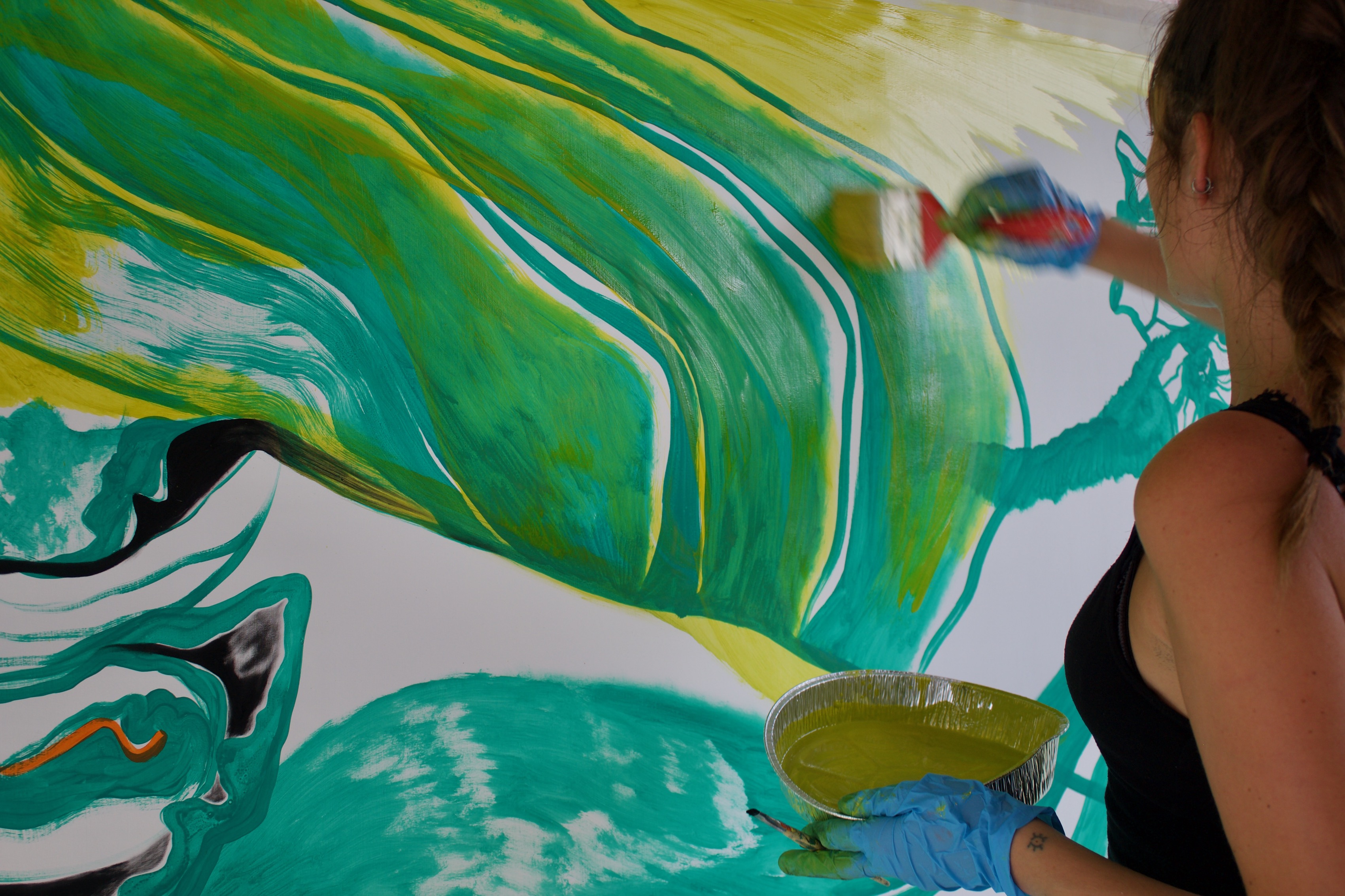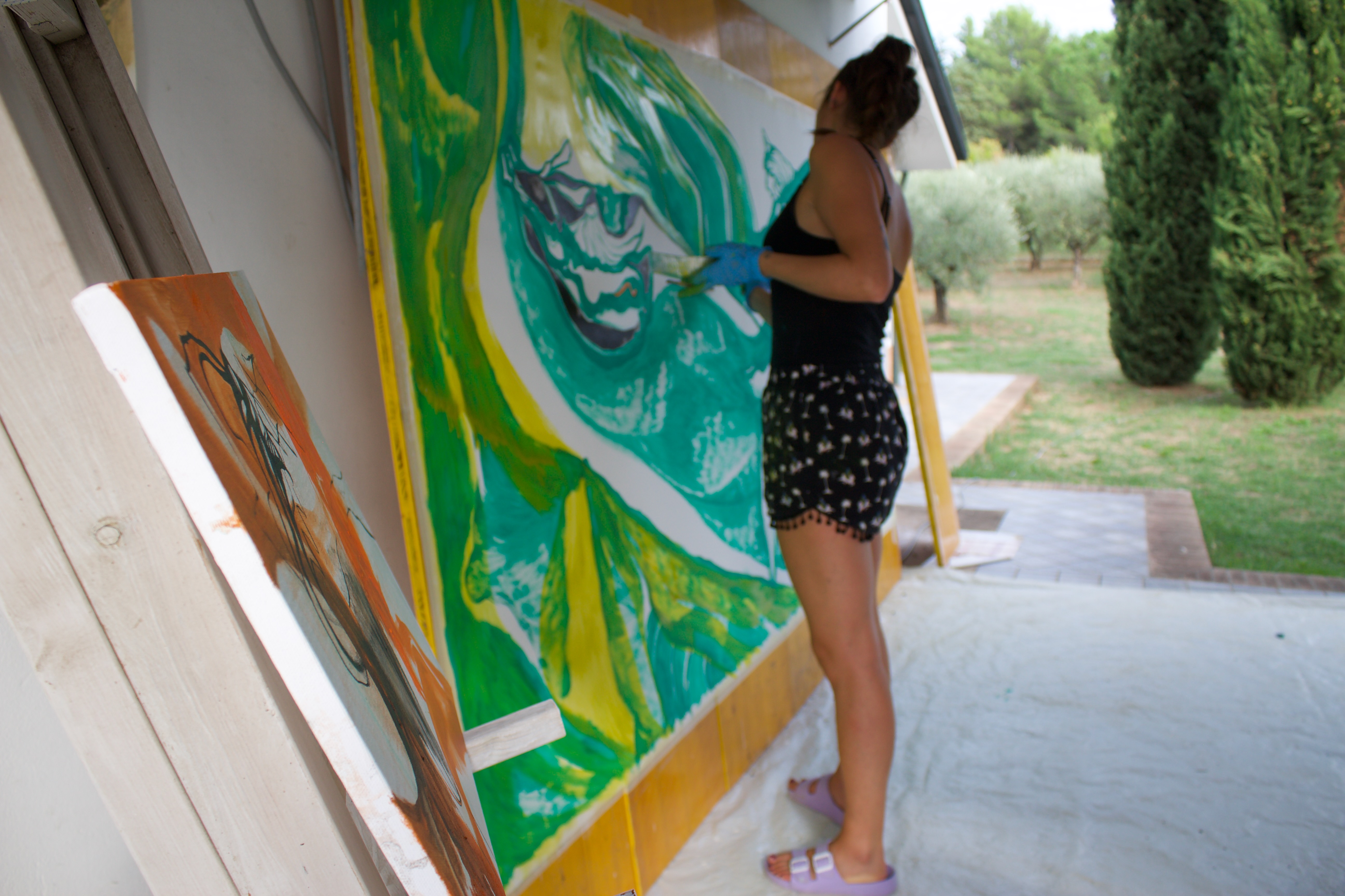 Flavia Dal Grande (1996, Arzignano. Vive e lavora a Venezia, Italia). Diplomata nel 2019 in Arti Visive e Discipline dello Spettacolo, con indirizzo Decorazione presso l’Accademia di Belle Arti di Venezia, dove frequenta il Biennio specialistico di Decorazione; ha svolto un periodo di studi presso l’Académie Royale des Beaux Arts de Liège (Belgio). Attualmente porta avanti la propria ricerca artistica presso lo studio Kadabra di Mestre, Italia. Dal Grande pratica un tipo di pittura che fa suo il motto “il caso non esiste”, legando sovente le proprie opere al tema del ricordo di un sentimento provato, così che la scelta dei colori e delle forme diventi “inconscia”. Lavorando senza bozzetti preparatori, la pittura si fa istintiva nella scelta dei colori e movimenti: dopo aver esternato una possibile traccia, ha inizio l’organizzazione degli spazi e la visualizzazione di un possibile soggetto. Il fatto di lavorare risolvendo man mano quello che si crea, ha portato l’artista a considerare che sono proprio gli impulsi improvvisi che alla fine generano il tutto. L’artista espone in mostre presso istituzioni e spazi, fra cui: “104ma COLLETTIVA GIOVANI ARTISTI”, Fondazione Bevilacqua la Masa, Venezia, Italia (2022); “Art Night 2022”, mostra collettiva dell’Atelier 20 a cura di Mirella Brugnerotto ed Elena Armellini presso l’Accademia di Belle Arti di Venezia, Italia (2022); “Vastus, Art Night 2019”, mostra collettiva dell’Atelier 20 a cura di Mirella Brugnerotto ed Elena Armellini presso l’Accademia di Belle Arti di Venezia, Italia (2019); “Shieri Shalom”, Palazzo delle Contesse, Belluno, Italia (2018); “Laboratorio aperto”, workshop di Pittura e Disegno e mostra collettiva a cura di Carlo Di Raco, Miriam Pertegato e Martino Scavezzon, Capannone 35, Forte Marghera, Venezia, Italia (2017).