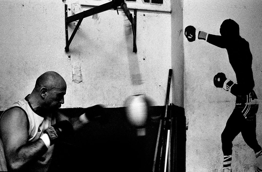 “Nonna Mira, la vera appassionata di boxe in famiglia, metteva la sveglia alle tre di notte e chiamava mio padre e me (bambino) per vedere insieme i grandi incontri in diretta dal Madison Square Garden di New York. Con questa memoria, sono andato alla ricerca di quelle atmosfere e dei valori della grande Boxe degli anni Sessanta-Settanta”. Ed infatti, l’opera di Giuseppe Cardoni non è una raccolta di scatti realizzati in angoli diversi del mondo e lungo itinerari sensibili che rappresentano solo gesti atletici e momenti di competizione sportiva, ma è una descrizione coniugata a una personale interpretazione dei luoghi, degli spazi, degli ambienti che hanno delle loro specifiche caratterizzazioni. Quando mi è stato chiesto di scrivere una riflessione da pubblicare all’inizio di queste pagine, la mia mente è corsa al bellissimo corpus di immagini dell’opera BOXE (2001, Contrasto/Roma) di James A. Fox, autore, secondo molti, del più bel fotolibro mai realizzato in Italia sul pugilato. Dice il fotografo inglese: “Non voglio che si pensi che le mie siano foto da fotografo sportivo, o che mi sia occupato solo di quello che accade all’interno delle dodici corde del ring. Quel che mi affascina è l’intero universo del pugilato”. Ed è l’atteggiamento che ha ispirato Giuseppe Cardoni, fotografo umbro di grande sensibilità che in Boxing Notes costruisce un affresco di visualizzazioni emozionali, in alcuni momenti di vera e propria poesia visiva, catturate in certi particolari territori della boxe, con lo sguardo e l’attenzione rivolti agli ambienti e agli aspetti umani che li connotano. Il momento atletico e competitivo, il gesto agonistico sono sempre sullo sfondo, sfumati dal trascorrere del tempo, tra passato, presente e futuro. Nei territori del pugilato si raccontano storie di vita, di atmosfere, di lealtà, di rispetto delle regole, di riflessioni, di sensibilità e funzione sociale dello sport. Si pensi ai diversi momenti che si vivono in una palestra, ai legami dei pugili con la disciplina sportiva, a quegli ambienti singolari sui muri dei quali campeggiano la rappresentazione della forza fisica, della competizione, della drammaticità dei vissuti degli atleti, Non solo. Si rifletta sui riti della vittoria, al senso di smarrimento nel momento della sconfitta, al sapore amaro e triste che genera spesso disillusione e solitudine. Giuseppe Cardoni dà all’osservatore la chiave di lettura per interpretare Boxing Notes, un lavoro che coniuga con armonia iconica l’aspetto fotografico con quello culturale. Scatti in bianco e nero raccolti in una trama di elevato profilo linguistico-espressivo nell’ambito di un progetto ideato, strutturato e realizzato con l’intento di rendere omaggio a uno sport che va scomparendo sull’orizzonte del tempo e “archiviare” contesti d’indagine di un mondo singolare. Una ricerca controcorrente, poco contemporanea, forse, addirittura, un progetto rischioso. Ma Giuseppe Cardoni che non teme il confronto, soprattutto quello fotografico e affronta con determinazione i problemi, si mette in gioco. Vara il progetto, ne studia i dettagli e prepara la realizzazione. E prende corpo Boxing Notes. Un book di immagini con al centro gli “ambienti”, in particolare le “atmosfere” della Boxe, disciplina sportiva che da tempo per molti è memoria e ricordi. Il nostro tempo non conosce o conosce solo in parte la Boxe, a molti giovani è sconosciuta, ma la nostra storia non può non tenerne conto perché è parte di essa. Colpiscono di queste immagini le atmosfere che irradiano, la semplicità, le suggestioni percettive, le “cose” che non ci sono, quelle che non si vedono. Le presenze e le assenze. Un “lavoro” con un profilo decisamente culturale con il quale l’autore si esprime in termini di creatività artistica attraverso il linguaggio della fotografia. Una ricerca maturata anche per contribuire oltre che alla descrizione, anche alla storicizzazione di alcune pagine del nostro vissuto. Storia di storie che raccolgono e custodiscono la memoria di momenti intensi, sentiti, semplici e spontanei, in linea con l’Italia di quegli anni e offre al lettore un punto di riferimento per chi si avvicina e intende leggere le fotografie. Leggere nel senso di interpretare, penetrare nei significati, quelli visibili e quelli invisibili, carpirne i contenuti, che da una parte segmentano il territorio d’indagine nel quale si è mosso l’autore e dall’altra danno visibilità ad una serie di sensazioni e di percezioni che connotano certi particolari contesti. Forse, senza averne la consapevolezza, ha tracciato un percorso da esperto sociologo visuale.
