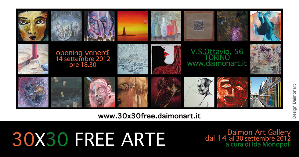 Il Progetto è dedicato ad Artisti emergenti che desiderano proporsi all’attenzione del pubblico torinese. E’ una mostra collettiva che raccoglie opere pittoriche e fotografiche di piccole dimensioni. FREE perchè non c’è un tema di riferimento e le opere sono selezionate solo in base alla qualità. Un contenitore per una varietà di sentire e di interpretare abbastanza ampia da mettere in luce il relativismo culturale che caratterizza la nostra epoca. 30×30 cm. (circa) è un recinto che l’opera può tracimare, visivamente o materialmente, quel poco che basta per diventare comunicazione. La qualità dei contenuti e della forma usata per esprimerli costituisce il “filo rosso”, la chiave di lettura per apprezzare le nuove proposte dell’Arte Contemporanea.