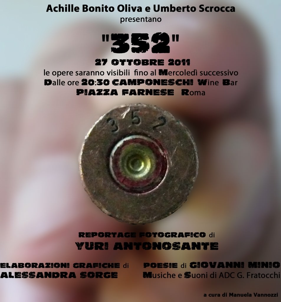 L’inaugurazione. 352 sarà inaugurata il 27 ottobre alle ore 20.30. Saranno presenti artisti, curatori e ospiti dell’ambiente culturale e artistico romano. Sarà possibile visitare la mostra sino al 2 novembre. Per informazioni e interviste info-line 347.0769422 o 352roma@gmail.com.