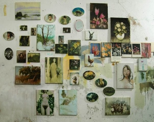una soffitta mentale, Un accumulo di immagini dipinte, stipate disordinatamente su mensole di legno grezzo. La pittura decostruisce il luogo e lo circonda di un aura di ricordo e memoria.