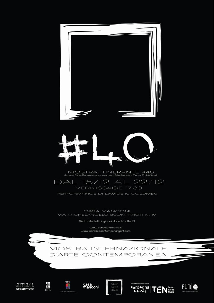 IL 15 Dicembre ore 17:30, arriva a Nuoro, negli spazi di Casa Manconi - in Via Michelangelo Buonarroti, n.19- La mostra, collettiva #40 a cura di Chiara Manca, con il coordinamento scientifico di Maria Jole Serreli e Fabio Costantino Macis.