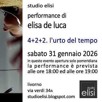 QUANDO: Sabato 31 gennaio 2026 - La performance sarà proposta in due momenti distinti, alle ore 18:00 e alle ore 19:00. Nel sottolineare il carattere esclusivo dell'azione e la necessità di una visione immersiva, s’informa che lo Studio Elisi sarà aperto solo ed esclusivamente durante gli orari della performance.