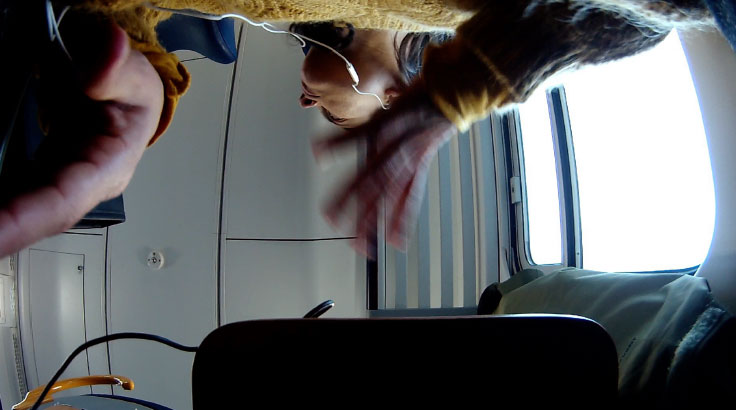 Il cuore del progetto nasce da un’esperienza radicale vissuta dall’artista su vagoni ferroviari viaggianti sulla tratta Pisa-Firenze. Tra il 2017 e il 2020, Elisa De Luca ha documentato la propria gestualità all’interno delle carrozze per lo più frequentate da pendolari, trasformando lo spazio ristretto di un sedile e il tempo del viaggio in un momento di studio e “produzione” dell'azione; ha, insomma, sottratto l’azione stessa agli spazi canonici propri dell’arte per riportarla ad “urtare” contro la realtà cruda dei vagoni, misurandosi con lo sguardo degli altri viaggiatori e con la percezione di un tempo oggettivo e inesorabile. «Ogni mio gesto era inseparabile dalla vita che viaggiava insieme a me su quei treni», spiega l’artista.