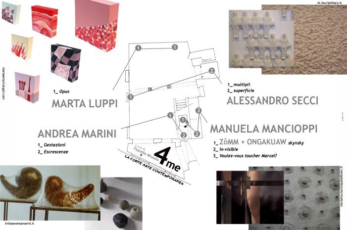 Qui gli artisti sono 4: quattro concezioni dell’arte, quattro diversi progetti di forme –che con un ulteriore gioco di senso linguistico abbiamo definito “Fourme”– che alterano il reale in un senso riflessivo e autentico