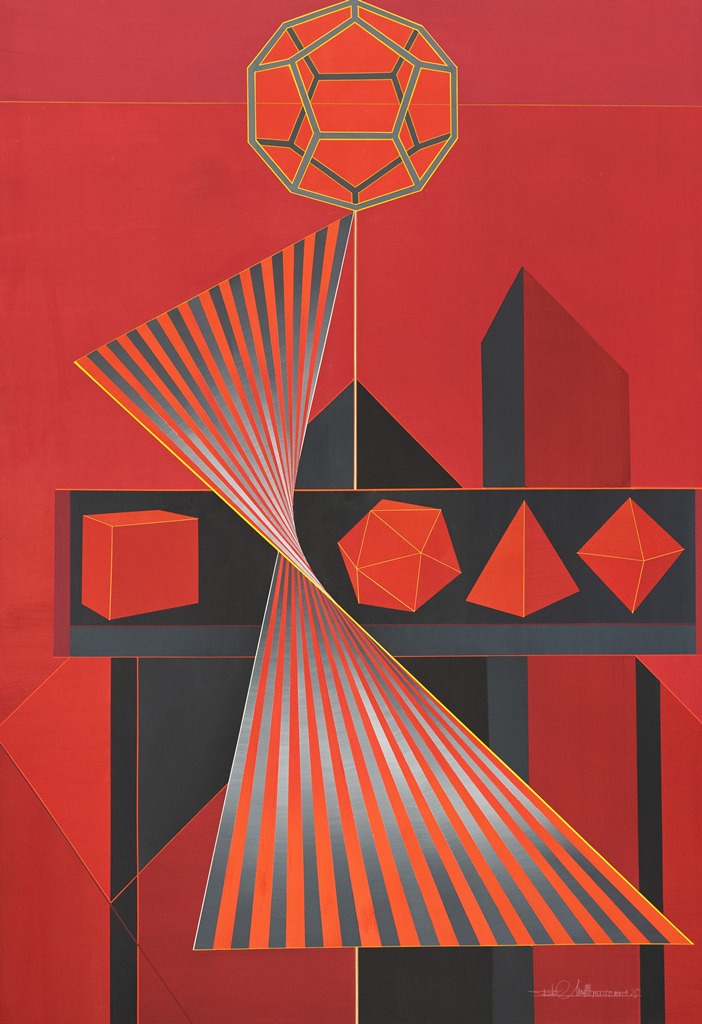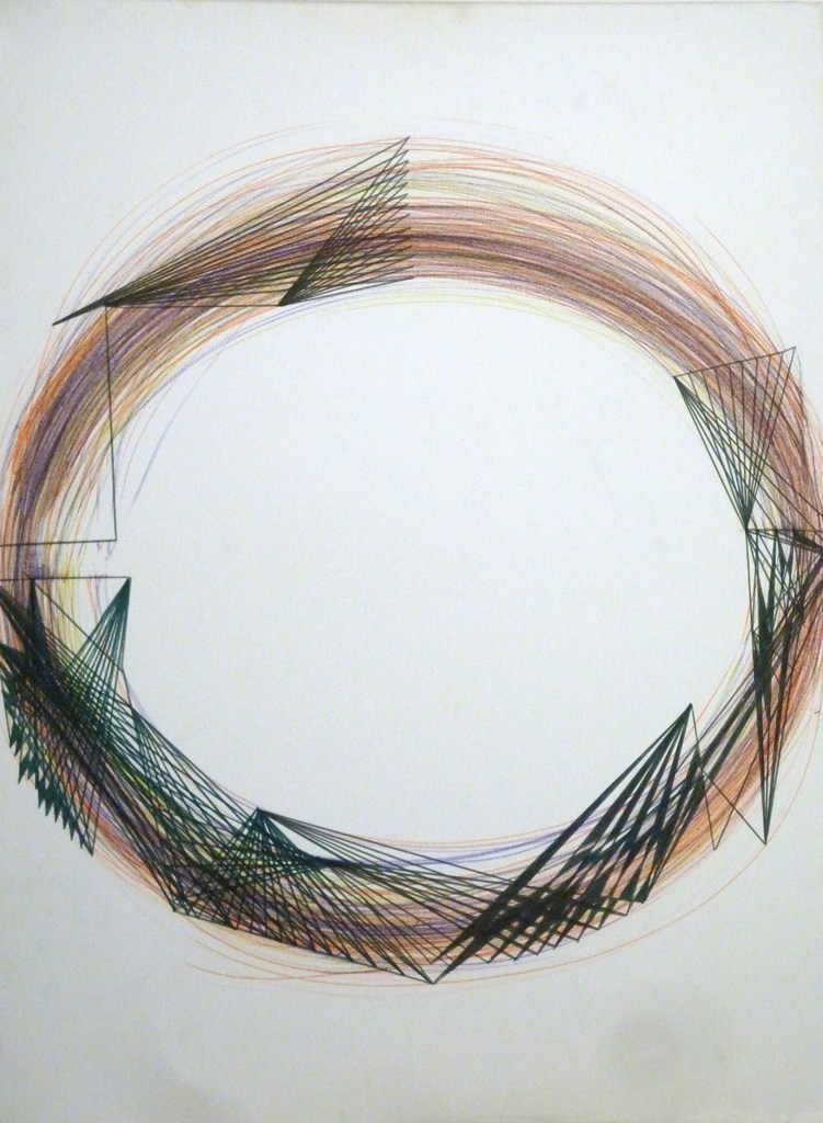 Silvana Mascioli (BO): artista che vive e lavora a Bologna, è ormai un nome affermato dell'attuale panorama artistico e il suo curriculum è ricco di partecipazioni a rassegne di livello nazionale e internazionale. Tra queste un posto di riguardo merita senza dubbio la sua partecipazione alla sessantesima edizione della Biennale internazione d’Arte di Venezia. Le sue opere, che hanno catturato la mia attenzione nell'ultima edizione della Triennale di Roma presso la storica e prestigiosa sede di Palazzo Borghese, appartengono senza dubbio al repertorio dell'Optical Art per la loro particolare tecnica esecutiva che, nelle varie fasi della realizzazione, tende sempre a coinvolgere lo spettatore in un coinvolgente rapporto di attiva e dinamica partecipazione, in una vera e propria interazione con l'opera d'arte. Silvana Mascioli è letteralmente attratta e affascinata dallo spazio inteso come entità magica e misteriosa, come elemento da sondare e gradualmente scoprire e analizzare. Segno e colore vengono così a creare giochi prospettici, lontananze e profondità capaci di creare l'illusione ottica della geometria e immergere l'osservatore in dimensioni altre, rarefatte e sospese, oltre il puro visibile. La nostra artista, insomma, con la sua materia e il suo gesto pittorico, attira lo sguardo dell’osservatore all’interno della sua costruzione visiva e dentro l’illusoria dimensione dello spazio-tempo, in una vera e propria vertigine prospettica che azzera la fisicità della tela e crea dimensioni di carattere virtuale e mentale.