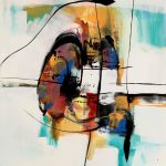 Elia Inderle (VI): Ritorna dunque a Piacenza, Elia Inderle, e vi ritorna dopo i significativi ed importanti successi ottenuti alla “Triennale di Roma”, dopo il suo inserimento, con ben tre opere, nel Museo d'Arte Contemporanea di Pisa presso le rinomate “Officine Garibaldi” della storica città toscana e dopo una sua straordinaria partecipazione alla cinquantanovesima edizione della Biennale Internazionale d’Arte di Venezia Padiglione Grenada. Nato a Schio, in provincia di Vicenza e residente a Santorso, sempre nella stessa provincia, Elia Inderle è un artista-filosofo contemporaneo di grande interesse che basa la sua ricerca pittorica su “lineee di pensiero” fortemente attuali. Pittura che procede di pari passo con i suoi studi filosofici offrendo agli osservatori profonde riflessioni sulla vita e l'esistenza, sull'Essere e il non Essere, sull'Essere e il nulla. In questa rassegna piacentina Elia Inderle presenta tre dipinti di grande intensità e bellezza. C’è, in questo nostro artista, un senso innato del colore e un timbro cromatico che, pur attingendo dalla grande e storica tradizione dell'Astratto e dell'Informale (Afro Basaldella, Gerhard Richter ecc), riesce tuttavia a farsi moderno e contemporaneo per le felici intuizioni tecniche, per la personalissima interpretazione e l'uso libero e spontaneo della materia pittorica. Ama il colore, Elia, lo ama perchè mai statico ed inerte, ma dinamico e attivo, in continuo divenire e trasformazione, come lo scorrere lento e inesorabile del tempo, gli avvenimenti della vita, i fatti imprevisti e imprevedibili che cambiano l’esistenza. Leggero e raffinato anche il suo segno che traccia percorsi, traiettorie e variazioni strutturali dell'immagine e dinamizza lo spazio seguendo opposte e contrastanti tensioni.