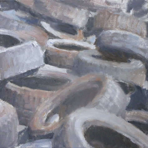 Andrea Mancini (Firenze, 1958) dipinge ammassi di materiali di ogni genere - cartoni, metalli, copertoni, legname, plastica - che si ergono come icone di un mondo in rovina, ma anche in perenne trasformazione. Nella composizione dei suoi dipinti ad olio, l'artista evidenzia come questi tortuosi cumuli materici possiedano una sorta di struttura logica, inspiegabile e suggestiva.
