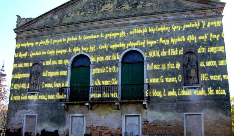 Il Linguaggio dell’Equilibrio. Joseph Kosuth è uno dei pionieri dell’arte concettuale e delle installazioni, iniziando negli anni sessanta con opere basate sul linguaggio e sulle strategie di appropriazione. Questo progetto, curato da Adelina von Fürstenberg, ha come suo fondamento il linguaggio stesso. Il lavoro è sia una riflessione sulla sua stessa costruzione che sulla storia e sulla cultura della sua ubicazione