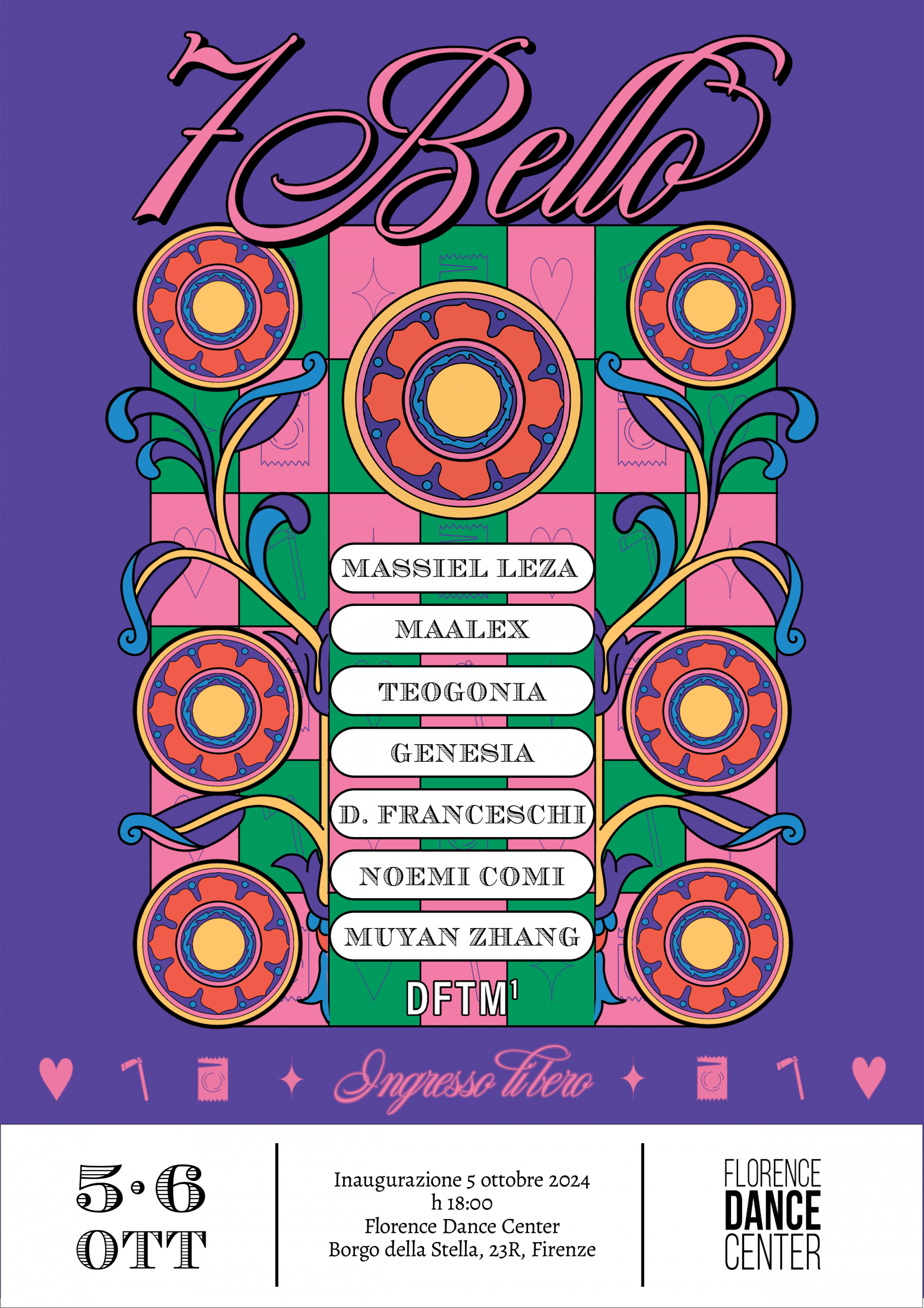 Inaugura sabato 5 ottobre 2024 alle ore 18:00 la mostra dal titolo "7Bello", progetto espositivo a cura di DFTM¹ - Don’t Feed The Monster, presso Florence Dance Center. La mostra è un evento e un’esposizione collettiva che espone opere di Noemi Comi, Duccio Franceschi, Genesia, MAalex, Massiel Leza, Teogonia e Muyan Zhang.