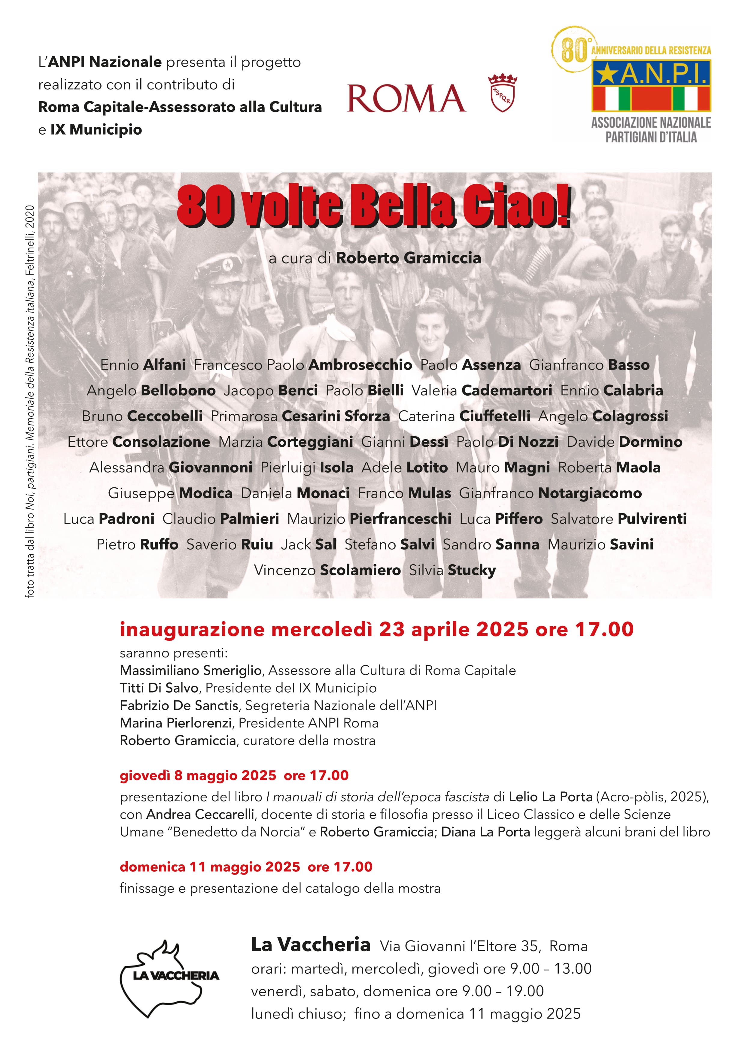 "80 volte Bella Ciao!" è il titolo della grande mostra ideata e curata da Roberto Gramiccia per celebrare l’ottantesimo anniversario della Liberazione d’Italia dal nazifascismo.