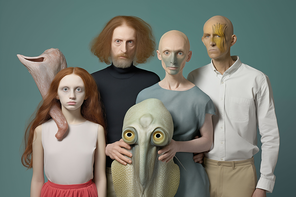 Installazione multimediale ed interattiva con i ritratti di 89 famiglie ibride e post-umane che esplorano identità, mutazione e nuove forme di relazione. Un atlante visivo tra arte, tecnologia e immaginazione che ridefinisce il concetto di famiglia contemporanea.