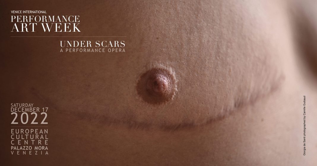 Per il 10° anniversario della VENICE INTERNATIONAL PERFORMANCE ART WEEK, progetto nato nel 2012 e dedicato alla performance art (realizzazione di eventi performativi ed espositivi, attivazione di processi di co-creazione, scambi internazionali) Live Arts Cultures e Studio Contemporaneo, associazioni veneziane impegnate nelle arti dal vivo, presentano la performance opera collettiva “Under Scars” (Sotto le Cicatrici), sabato 17 dicembre 2022 a Palazzo Mora, sede dell’European Cultural Centre di Venezia. L’evento è a ingresso gratuito e avrà inizio alle ore 19:00.