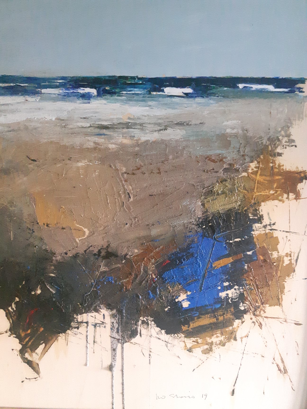 L’arte di Ivo Stazio danza sull’orlo sottile che separa una figurazione “scabra ed essenziale”, allusiva, ad un’astrazione informale materica ed altrettanto, ma per altri versi, allusiva. In tutti i suoi quadri c’è il recupero consapevole del retaggio della migliore figurazione italiana degli ultimi cento cinquant’anni: dai macchiaioli fino ai cosiddetti “ultimi naturalisti”, tra una sintesi formale al limite della dissoluzione della forma e una pastosità in rilievo della materia pittorica trattata con decise e sapienti spatolate. Spesso poi lo spunto figurativo, tende a ridursi a mero punto di partenza per affacciarsi con lo sguardo e con la mente al limite della pura esplorazione astratta, informe ed informale, “oltre il Reale”, anche se i piedi, metaforicamente parlando, restano sempre saldamente ancorati ad estreme propaggini di Realtà sospese sull’abisso delle emozioni. Una pittura in costante tensione oltre il Blu dell’orizzonte, oltre l’orizzonte del Reale.