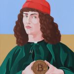 Il progetto espositivo “The Blue Banana” si completa presso FUTURA Art Gallery che esporrà le opere su tela di Giuseppe Veneziano, trasformando lo spazio espositivo in una quadreria contemporanea con i pezzi più iconici dell’artista. Uno fra tutti Cripto valuta che funge da fil rouge tra la mostra in piazza e quella in galleria. Il Ritratto d’uomo con medaglia di Sandro Botticelli, invece di impugnare l’effige di Cosimo il Vecchio tiene in mano un ideale Bitcoin, il valore che l’artista ha assegnato all’opera e che rimarrà tale per sempre.