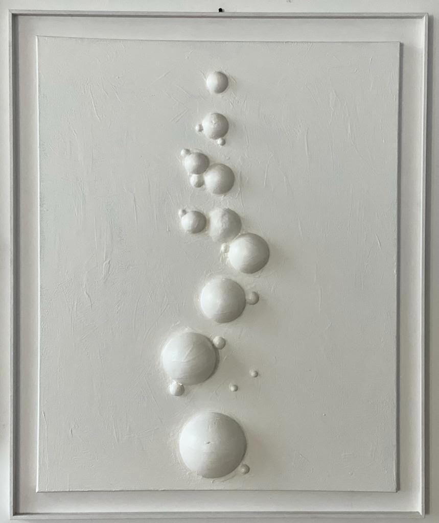 E’ possibile ammirare inoltre, “Better than New” irriverente opera dell’artista Marcello Maugeri, dove eleganti gambe femminili in stivali viola spiccano sullo sfondo dell’iconico logo della maison “Gucci” sfidando convenzioni, regole e razionalità sottolineando un tempo in cui tutto è temporaneo e le due tecniche miste in poliuretano e smalto “Silenzio” e “Massimo Silenzio” di Cristiana Pedersoli, in cui oniriche bolle su tela, invitano a far riflettere su un mondo che nell’ultimo anno e mezzo è apparso “sospeso”; l’artista ribadisce al contempo il bisogno di un distacco dalla realtà per ritrovare noi stessi, una immersione sott’acqua in cui ogni rumore è ovattato.