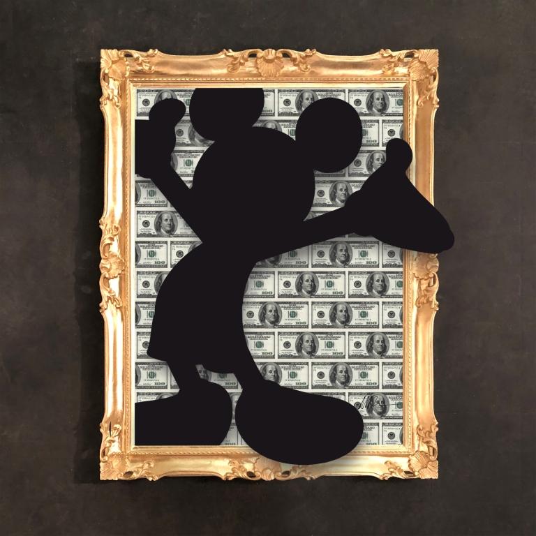 Sulle pareti del pianterreno i “Mickey” di Marco Bettini; per l’artista il famoso personaggio Disney rappresenta il simbolo pop per eccellenza: allegro, ironico, spensierato. Appoggiato su un fondo di dollari, il suo Topolino sembra voler saltare fuori dalla tela per raccontare questo movimento nella sua essenza.