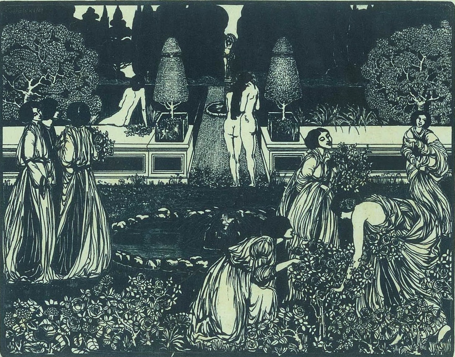 In mostra oltre novanta opere su carta (disegni, tempere, pastelli, litografie) di Giovanni Guerrini facenti riferimento alla sua produzione giovanile (1908-1928), legata agli stilemi “primonovecenteschi” di derivazione Liberty e Preraffaelita