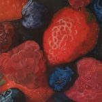 La mostra fa parte di una rassegna mensile chiamata Bollicine e Arte che ha l’intento di offrire al pubblico un nuovo modo di fruire l’arte, in un ambiente informale e sociale. Pomodori e frutti di bosco giganti, dipinti con una tecnica straordinaria che evidenzia ogni più più piccolo particolare.