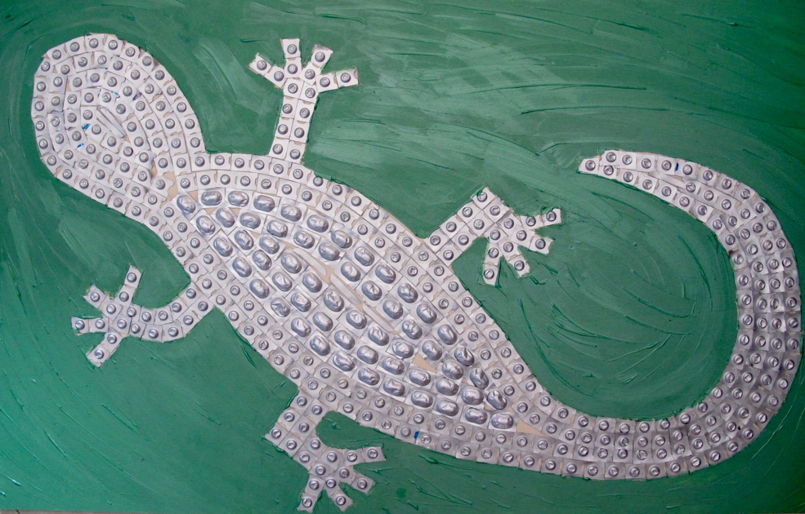 Le sue opere sono uniche. L’artista ricorre spesso all’utilizzo dei blister (piccole confezioni di plastica utilizzate come contenitori, spesso monodose di farmaci), che rendono i lavori tridimensionali, dandogli un effetto simile al metallo.