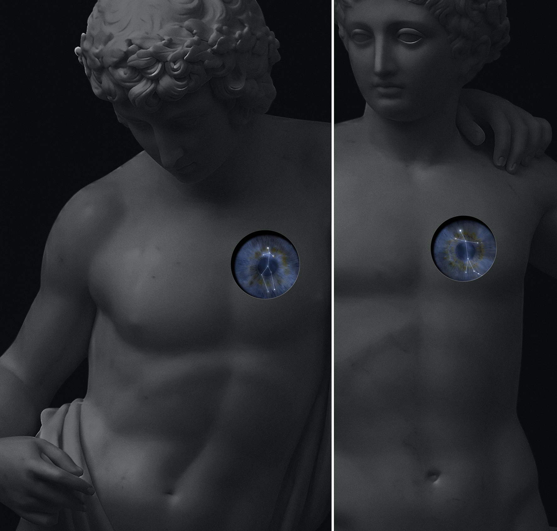 Annalaura di Luggo interviene su modelli storici, sculture e pitture, aprendo varchi fisici e simbolici all’interno delle opere che accolgono occhi rielaborati, capaci di raccontare e instaurare un dialogo con l’immaginario mitico. Attraverso immagini e video, l’artista riattiva narrazioni, storie e leggende, facendo emergere elementi identitari e simbolici che mettono in relazione l’antico con l’esperienza contemporanea.