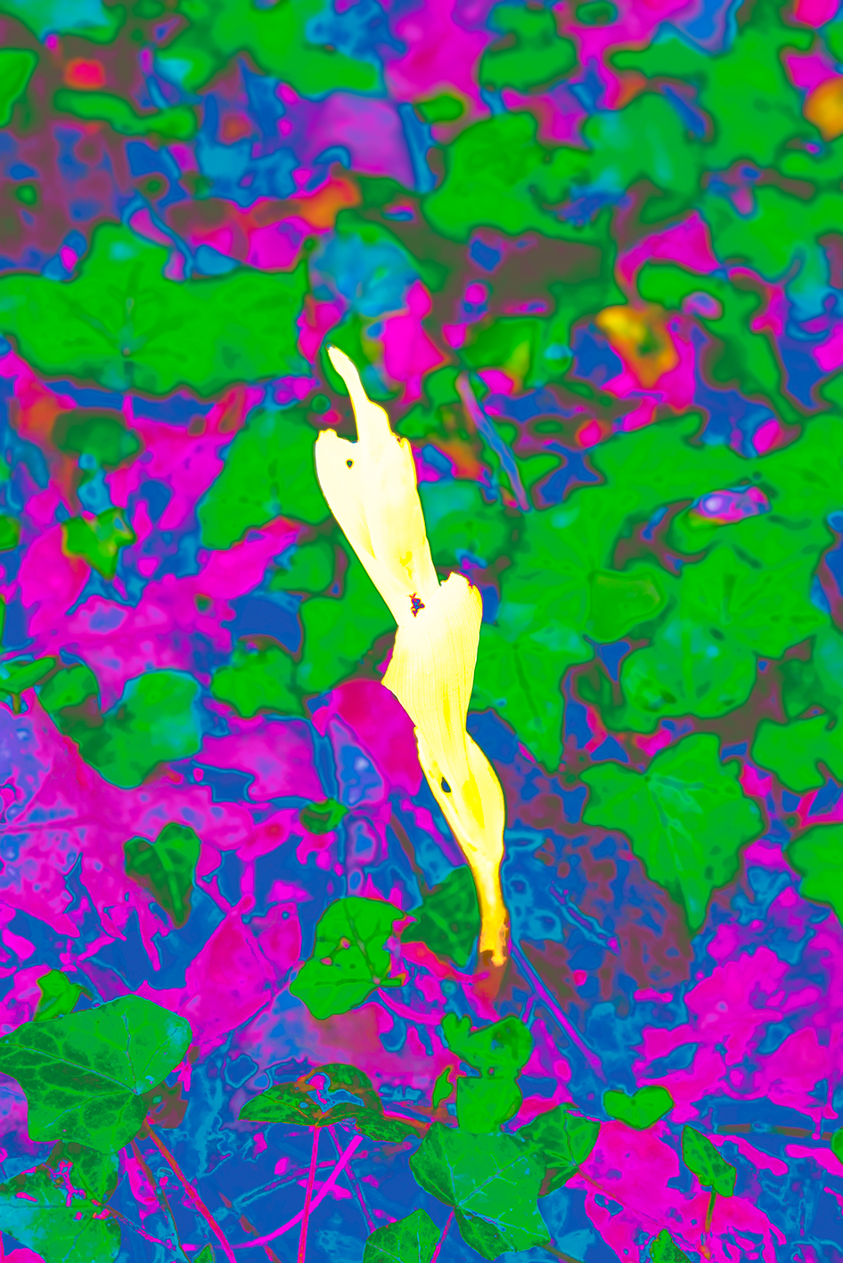 Tre serigrafie reattive ai raggi UV saranno inoltre energizzate dalle luci nere, emettendo uno strano splendore. Ognuna di loro inquadra l’evoluzione dell’Orchidea Fantasma, una pianta albina, che al fine di evitare la luce del sole è in perpetua evoluzione. Maxime Rossi ha preso inspirazione dalle descrizioni evocative create da Vladimir Nabokov per la copertina del suo romanzo “Ada.” L’interpretazione di Rossi sfida la semplice categorizzazione di rappresentazione naturalistica. Queste stampe si addentrano nella metamorfosi eterogenea della pianta, un clone che va dalla sua manifestazione fisica al suo rendering digitale solarizzato, risuonando con la dialettica delle matrici, sia positiva che negativa, trovata nelle sculture.