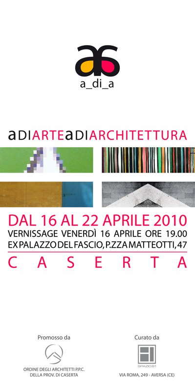L’Ordine degli Architetti Pianificatori, Paesaggisti e Conservatori della Provincia di Caserta, mediante l'organizzazione di un planning di eventi espositivi di respiro nazionale ed internazionale, è stato parte attiva, negli ultimi anni, nella promozione dei valori architettonico – culturali stillati da ricerche svolte nel contesto territoriale casertano. “A di A - A di arte A di architettura” è una mostra collettiva incentrata sul rapporto figurativo che esiste tra l’arte e l’architettura, tema mai abbastanza speculato, qui offerto come medium propositivo per i lavori di artisti esordienti e non, e di architetti inscritti all’albo professionale di Caserta, tutti legati, per interesse culturale alla ricerca o professionalmente alla realtà urbana della provincia casertana.