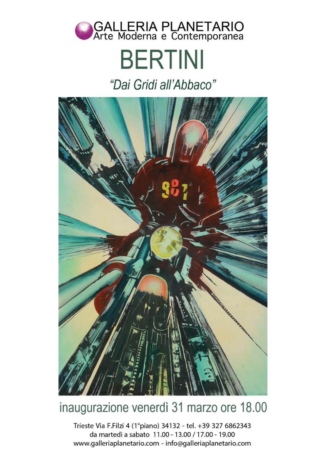 Per i 100 anni della nascita dell’artista Gianni Bertini, la Galleria Planetario di Trieste propone una mostra di opere storiche, “Dai Gridi All’Abbaco”, che si inaugura, venerdì 31 marzo, alle ore 18.00, in via Fabio Filzi, 4 (primo piano), presentata dalla storica dell’arte Francesca Martinelli.