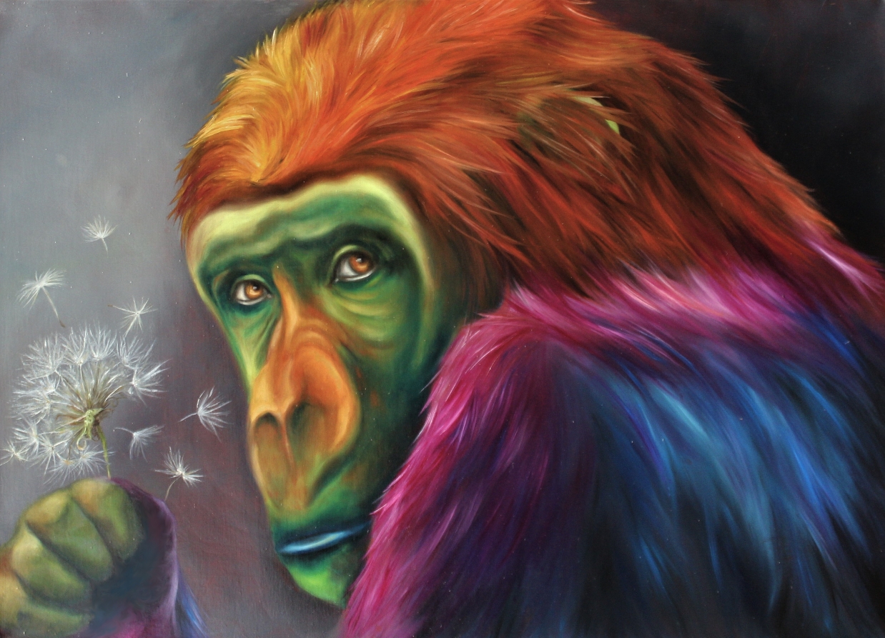 Giusi Velloni presenta una serie di dipinti che trattano della natura, l’ambiente facenti parte tutti integrante di un grande cosmo, ma gli animali sono i protagonisti. In uno stile autonomo Velloni afferma il suo linguaggio pittorico in calibrati equilibri di masse contrapposte, forti chiaroscuri e potenti accensioni cromatiche. Le opere in mostra affermano l’amore dell’artista per la natura, consapevole di come tutto e tutti dipendano da essa. L’uomo e gli animali sono simboli della natura appartenenti allo stesso pianeta. Gli animali dallo sguardo acuto, ci costringono a guardarli negli occhi, un incontro con l’altro da sé, che può rivelarsi perturbante.