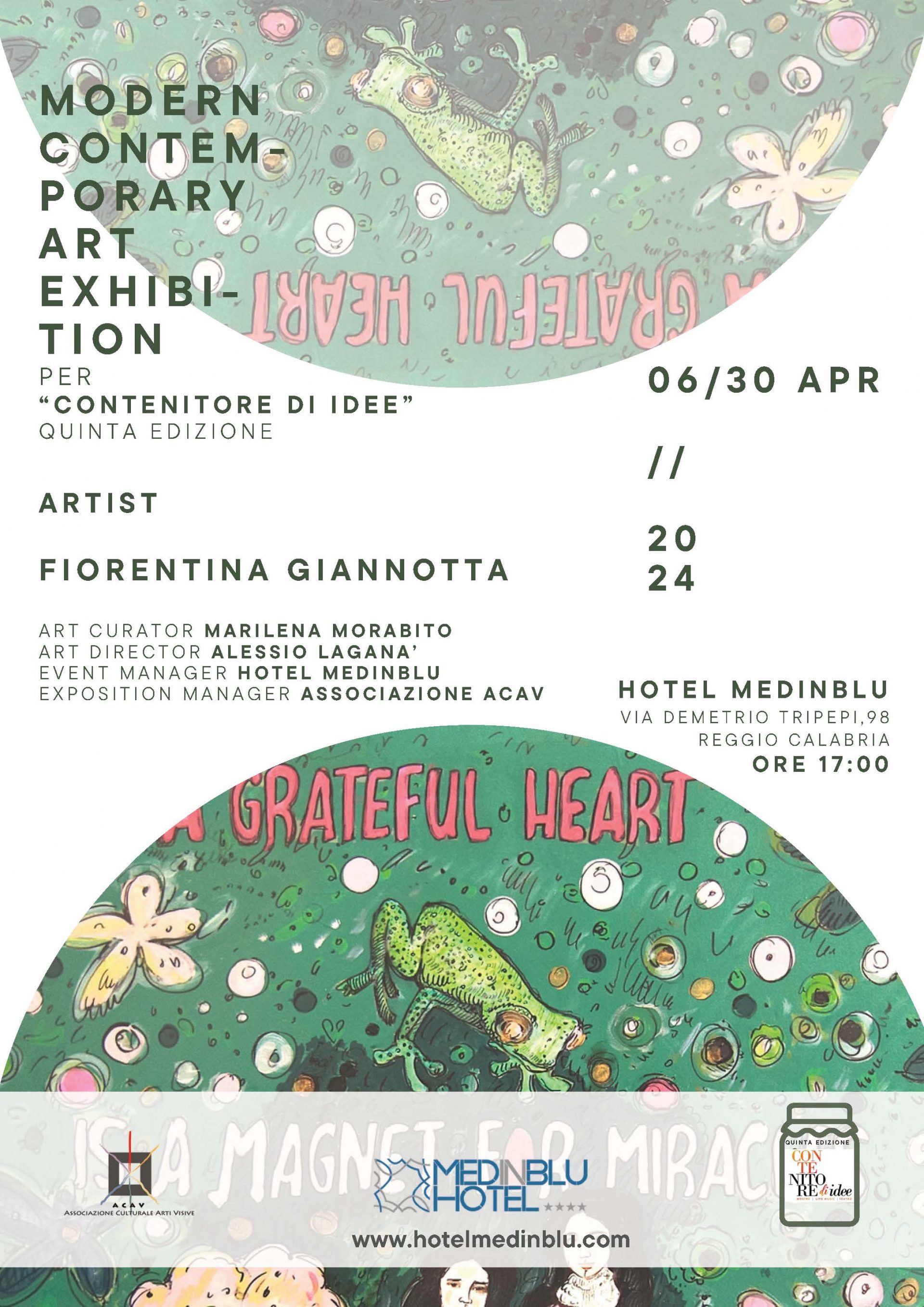 Il direttore dell'Hotel Medinblu, Sergio Pitasi con la manifestazione “Contenitore di Idee”, ha reso possibile questo straordinario evento grazie alla sua visione ed al suo approccio alla multidisciplinarità dell’arte. La mostra è organizzata dall'Associazione Culturale Arti Visive (ACAV), con la direzione del presidente Stefano Milazzo.