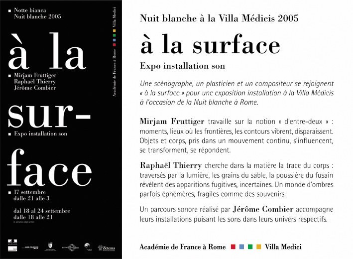 Una scenografa, un artista e un compositore si incontrano “in superficie” (“à la surface” N.d.R.) per una mostra-installazione a Villa Medici, in occasione della Notte Bianca.