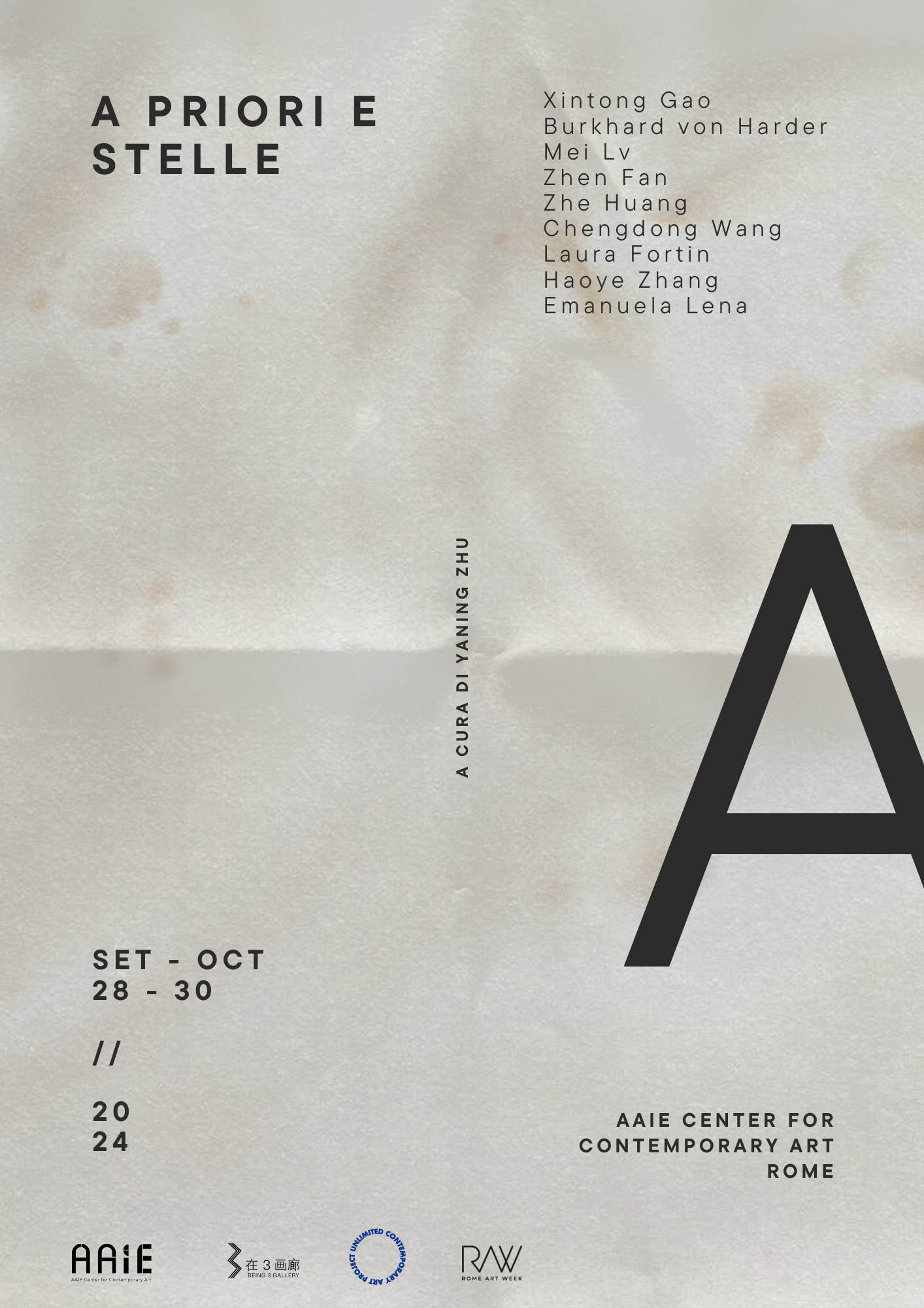 AAIE è pronta a presentare "A Priori e Stelle" dal 28 settembre al 30 ottobre nello Spazio Roma, esponendo le opere di Gao Xintong, Burkhard von Harder, Lv Mei, Fan Zhen, Huang Zhe, Wang Chengdong, Laura Fortin, Zhang Haoye ed Emanuela Lena. Questa mostra, curata da Yaning Zhu, include alcune opere che verranno mostrate pubblicamente per la prima volta.