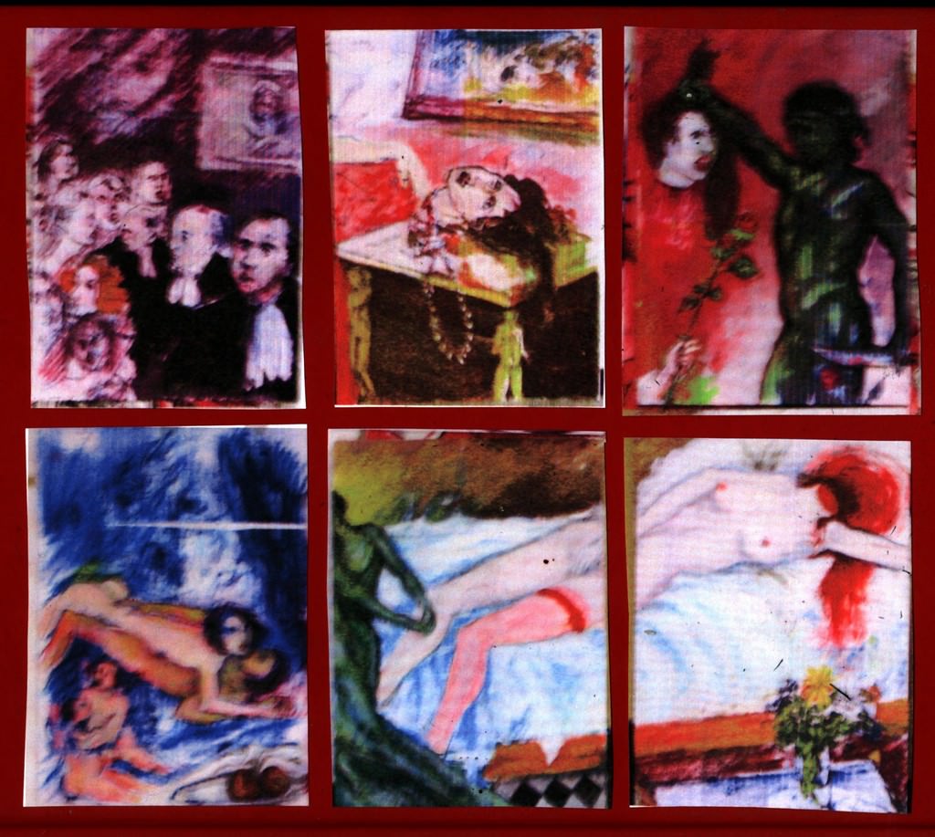 Nella mostra domina poi il pannello composito di oltre due metri di larghezza, l’ultimo lavoro pittorico: il grande polittico direttamente ispirato alla poesia “La Martire” di Charles Baudelaire.