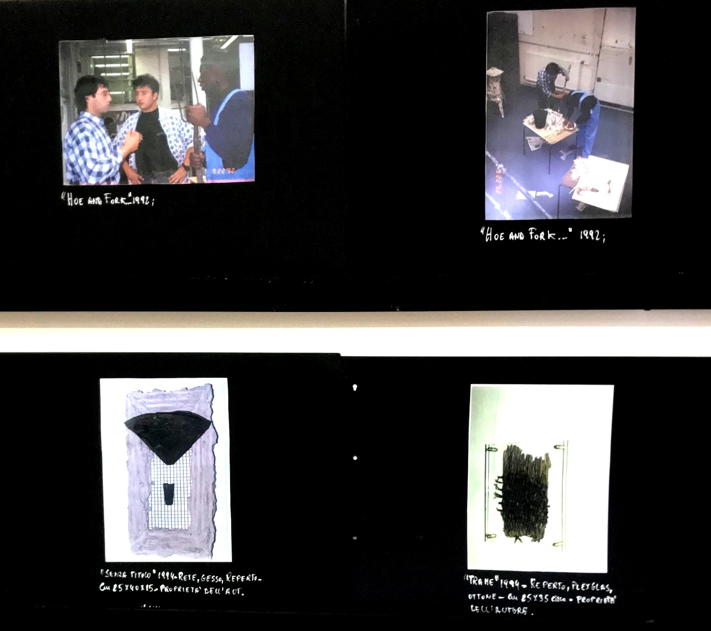 L’installazione è composta da due opere eseguite dai due artisti, rispettivamente una silhouette di volto umano sprovvista di tratti somatici sostituiti da una sagoma di libellula – di Arcuri – e una scultura/parola – di Riconosciuto.