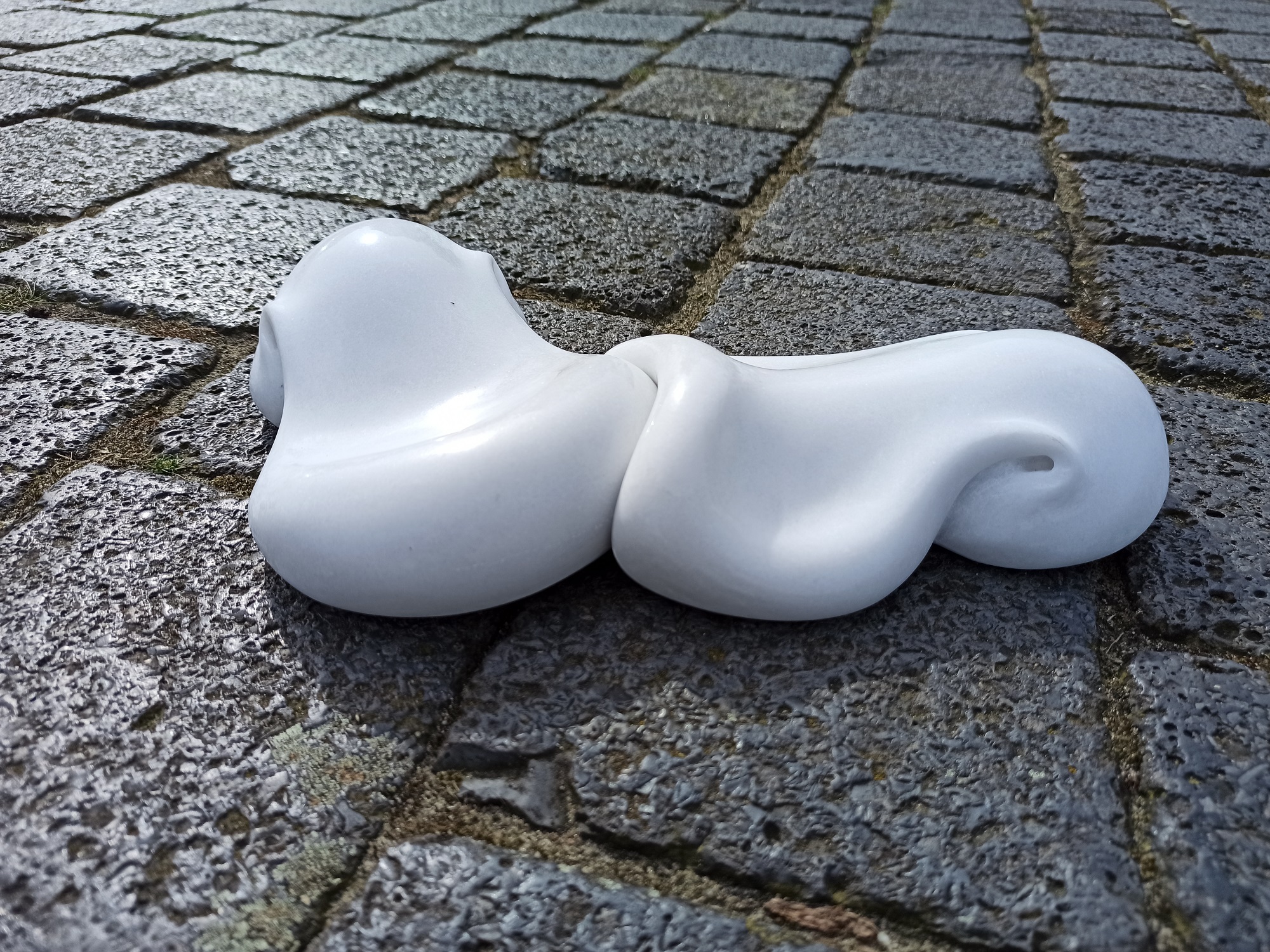 Dal 1997, gli artisti di Monaco e New York: Julia Venske (nata nel 1971, Berlino) e Gregor Spänle (nata nel 1969, Monaco) hanno collaborato per concepire e scolpire le loro forme enigmatiche e biomorfe dalla pura pietra bianca del nord Italia. Scrupolosamente modellate e levigate, le loro opere coinvolgono lo spettatore, l'un l'altro, così come una gamma di oggetti trovati in modi che suggeriscono la carne viva: corpulenta, sensuale e giocosa. Attingendo a fonti sia classiche che futuristiche, queste forme carnose e bianche, o presenze, attivano spazi e oggetti spesso trascurati. Scivolano sui pavimenti, si piegano attorno agli oggetti e strisciano sui muri assumendo pose manieristiche, che alterano la nostra percezione della loro sostanza e del modo in cui vengono create.
