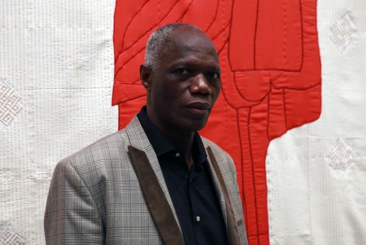 Direttore del Conservatoire des Arts et Métiers Multimedia di Bamako, Konatè è uno degli artisti più riconosciuti del continente. Tipici della sua cifra stilistica sono “arazzi” di grande formato in cui centinaia di strisce di stoffa, principalmente cotone (una delle colture fondamentali del Mali), scendono a cascata combinandosi in affascinanti effetti cromatici. Inizialmente orientata all’astrazione, la sua ricerca si è aperta poi anche in parallelo a riferimenti alla realtà e al sociale, legandosi all’attualità geopolitica, in particolare alla guerra civile in Mali tra le forze governative, gli indipendentisti tuareg e i ribelli islamisti.