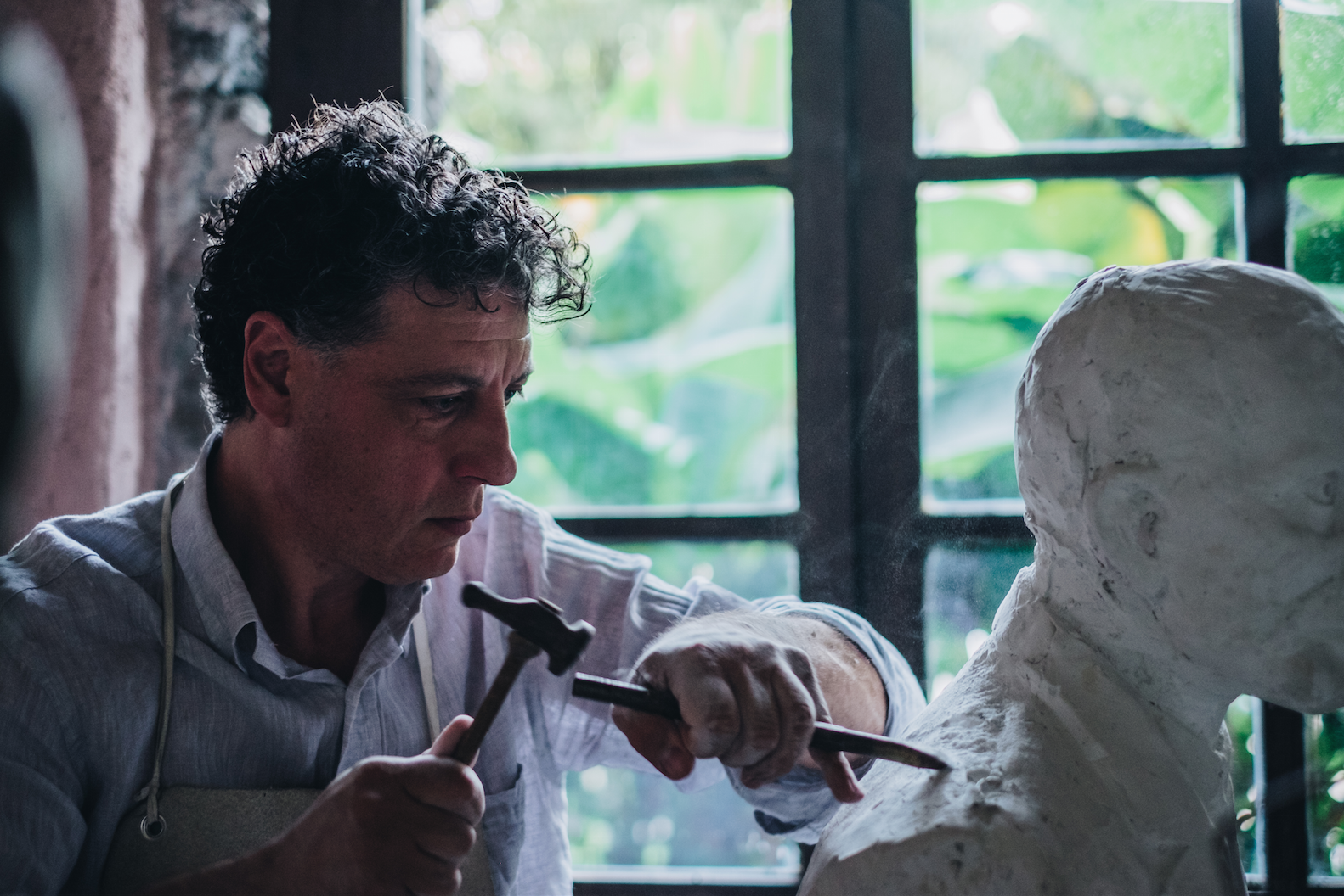 Una volta condiviso il modello in argilla con la Committenza , secondo antica tradizione da bottega d’arte, attraverso la tecnica della ‘puntatura’ il modello è stato riportato su marmo per essere poi finito a regola d’arte.