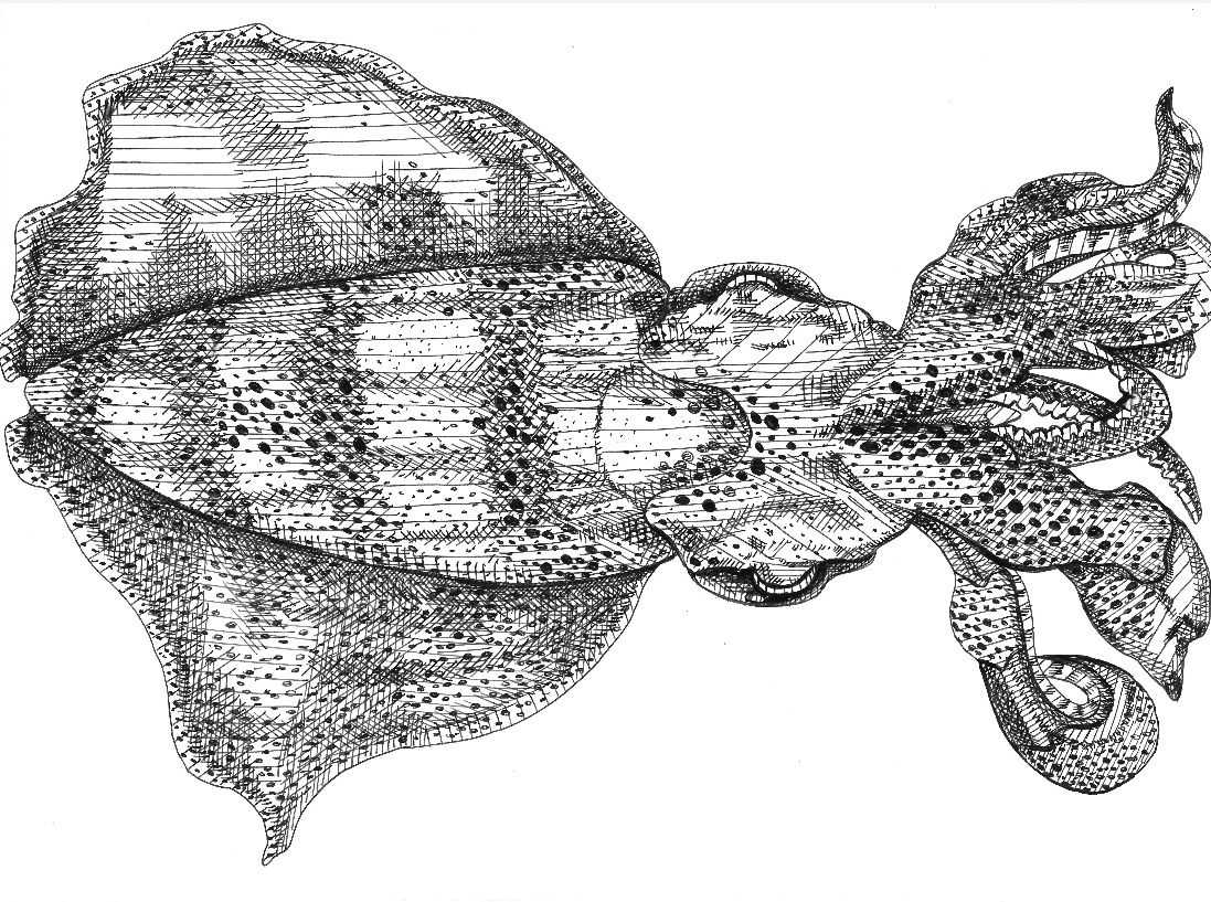 ABISSI di Arianna Fioratti Loreto trasforma creature marine in visioni sospese tra reale e fantastico. Disegni minuziosi a china, fatti di stratificazioni lente, creano un immaginario ispirato a biologia e bestiari medievali, dove il naturale diventa instabile, enigmatico e profondamente evocativo.