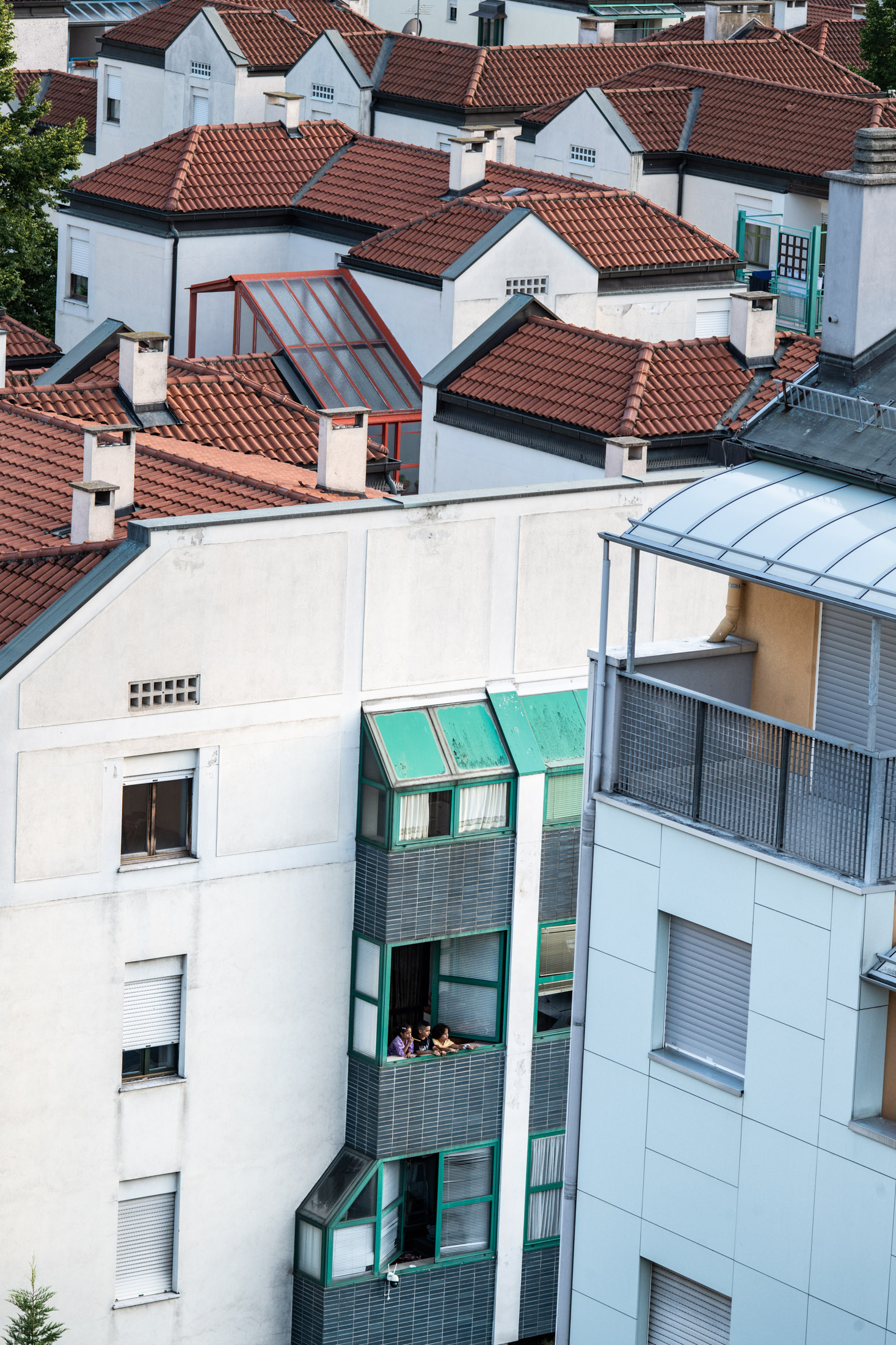 Da Vipiteno e Colle Isarco, nei pressi del Brennero, a Brunico e Campo Tures in Val Pusteria; dai centri venostani di Silandro e Lasa al borgo di Solda in Alta Val Venosta; da Bressanone a Merano passando per l’insediamento industriale di Sinigo, e ovviamente Bolzano: Ivo Corrà ha incontrato l’universo IPES raggiungendo quasi tutti gli estremi della provincia. Rivificando la figura del fotografo “esploratore”, ha coltivato un’idea complessa di survey intesa quale atteggiamento relazionale non meno che descrittivo, basato sull’oscillazione continua tra guardare e ascoltare, osservare dal fuori e dall’alto, passare attraverso ed entrare dentro. Il progetto espositivo di Abitare è vita sottolinea il peso e il significato di questi termini interni al lavoro e al suo metodo: se guardare, anzitutto da fuori, significa porsi in posizione di osservazione dei singoli edifici e dei complessi residenziali secondo più angolazioni e motivi di interesse, ascoltare comporta il predisporsi ad incontri e conversazioni sorte sul posto, letteralmente al livello di strada o di corte, foriere di indicazioni e sapere specifico degli abitanti. Qui il fotografo si è già spinto attraverso e dentro gli ambienti che con gli oggetti architettonici formano insiemi inscindibili: i quartieri con la loro stratificazione materiale e sociale, nei centri urbani maggiori; brani di paesaggio ibrido fra il rurale e l’antropico, quando la ricerca si inoltra negli insediamenti di minore scala, restituendo caratteristiche strutturali e trasformazioni del territorio extra-urbano. Indagando l’interno dei singoli appartamenti e proseguendo per corti, orti o giardini il connubio fra indagine visiva e racconto passa anche per i ritratti di molti “inquilini”: i loro volti in primissimo piano sono sia indicatori di spessore umano che delle relazioni spaziali a cui intimamente partecipano. Si aggiungono, in visioni a tratti piranesiane, omaggi ai complessi apparati tecnologici che di molti edifici costituiscono l’invisibile hardware.