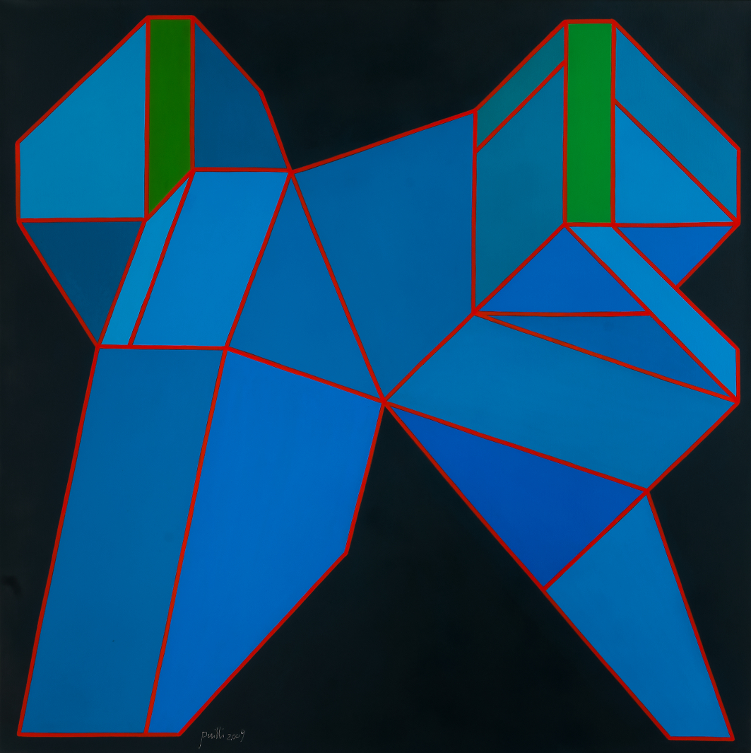 Dopo i lavori degli anni Cinquanta, dopo i cosidetti “fumetti” dei Sessanta, caratterizzati da un segno pittorico libero e quasi calligrafico, ma articolato in rigide inquadrature come sequenze di una narrazione, Perilli approda alla definitiva svolta dell'”Irrazionale geometrico” dettata dalla necessità di sviluppare la ricerca di uno “Spazio Immaginario”, apparentemente illogico e irrazionale, descritto attraverso l'inesauribile formulazione di germinazioni geometriche in cui solidi e figure inverosimili sono articolati seguendo visioni e prospettive multiple, infinite combinazioni e possibilità di proliferazione per offrire punti di vista ambigui, contradditori e labirintici che travalicano i limiti della prospettiva tradizionale e compongono un gioco infinito di rimandi e di concatenazioni.