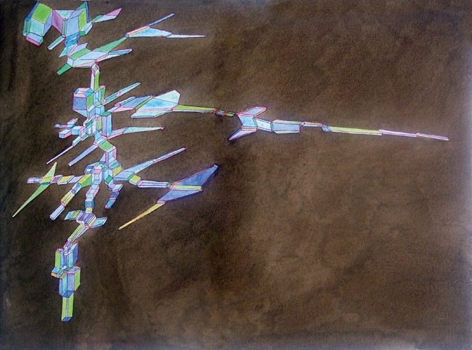 In questi intensi momenti nascono “geometrie d’invenzione”, come evocate dal curatore della mostra nel catalogo, e “l'immagine - come scrive ancora l’artista - esce dalla tela e prosegue con movimenti invisibili a spostarsi nello spazio, consentendo la trasmissione più ampia di messaggi e simboli”