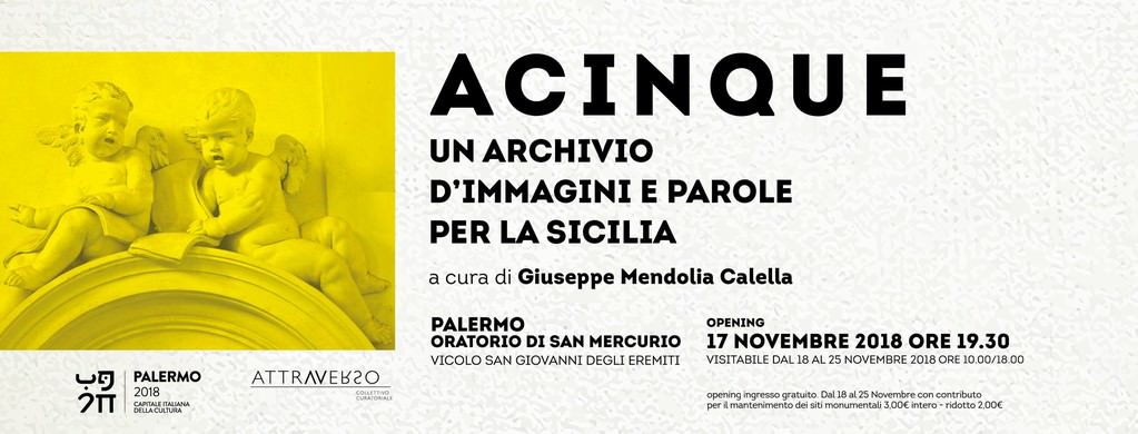 S’inaugura Sabato 17 Novembre 2018 alle ore 19.00 nel suggestivo Oratorio di San Mercurio di Palermo il progetto espositivo ACINQUE un archivio d’immagini e parole per la Sicilia.