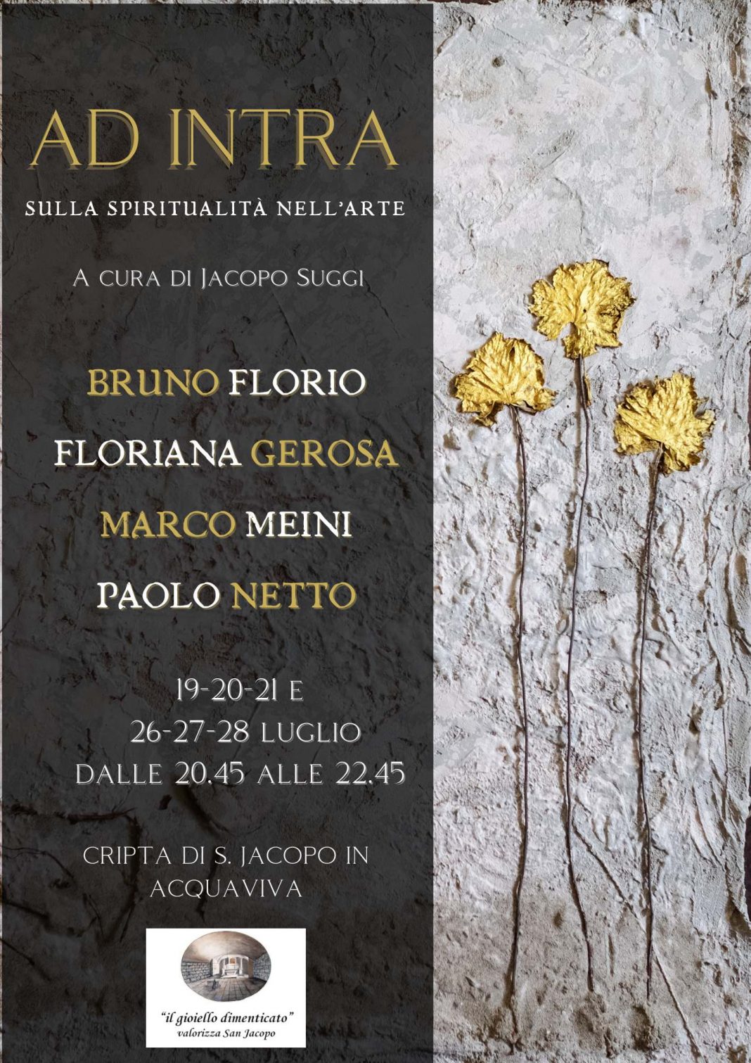 Per il secondo anno, l’antichissima cripta di San Jacopo in Acquaviva, che sorge sotto l’omonima chiesa livornese, ospita una mostra d’arte contemporanea, si tratta della collettiva AD INTRA - sulla spiritualità nell’arte.