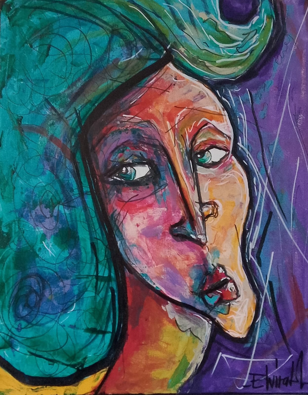Corpi di donne sono silhouette fatte di colori accesi e dal segno agitato. Contrasti cromatici forti e lineamenti affilati; sguardi e posture talvolta irriverenti che ci parlano della complessità del mondo femminile, della relazione con il sé e con il mondo.