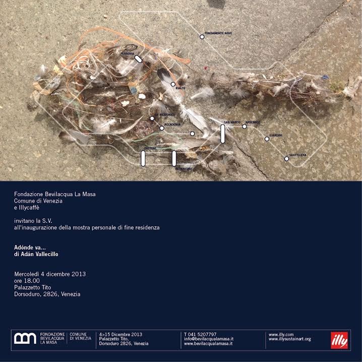 Entrare nella città alla ricerca dei suoi spazi e materie residuali. È questa la ricerca che Adàn Vallecillo (1977, Honduras) ha portato avanti durante la sua residenza a Venezia. Tre mesi di lavoro che arrivano grazie alla collaborazione tra la Fondazione BLM e illycaffè e che si inserisce nell'ambito del progetto illySustainArt con cui l'azienda triestina promuove i giovani artisti provenienti dai paesi emergenti. Centro del progetto è il sito www.illysustainart.org , una vetrina sul mondo dell’arte contemporanea per artisti e curatori provenienti da Paesi emergenti, che qui hanno la possibilità di mostrare il proprio lavoro a noti esponenti dell’arte contemporanea e che ha permesso ad Adàn Vallecillo di essere scelto come assegnatario della residenza.