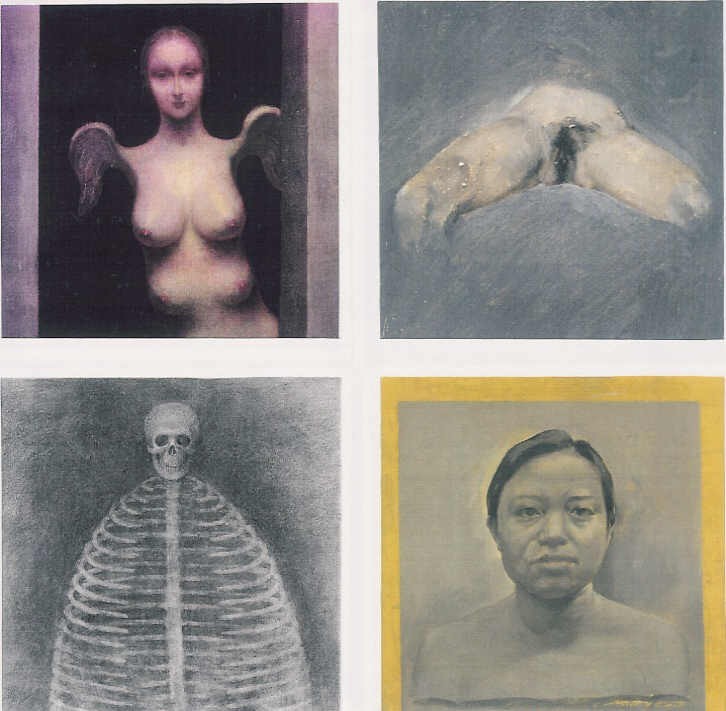 E’ lo stesso occhio notturno e inquieto che pare generare le sirene di terra, le grandi madri scheletriche di Scarpa Kos. Alla matrioska dell’icona-volto-donna ne segue una seconda che frantuma l’identità femminile in un teatrino popolato da gotiche creature intente a inscenare pantomime: la grande madre scheletrica contiene una risata dai molti seni, la sirena anfibia cerca di sollevarsi da terra sbattendo le alette atrofizzate. Eppure nei loro sorrisi ironici ritroviamo la dissacrante nudità del quotidiano.