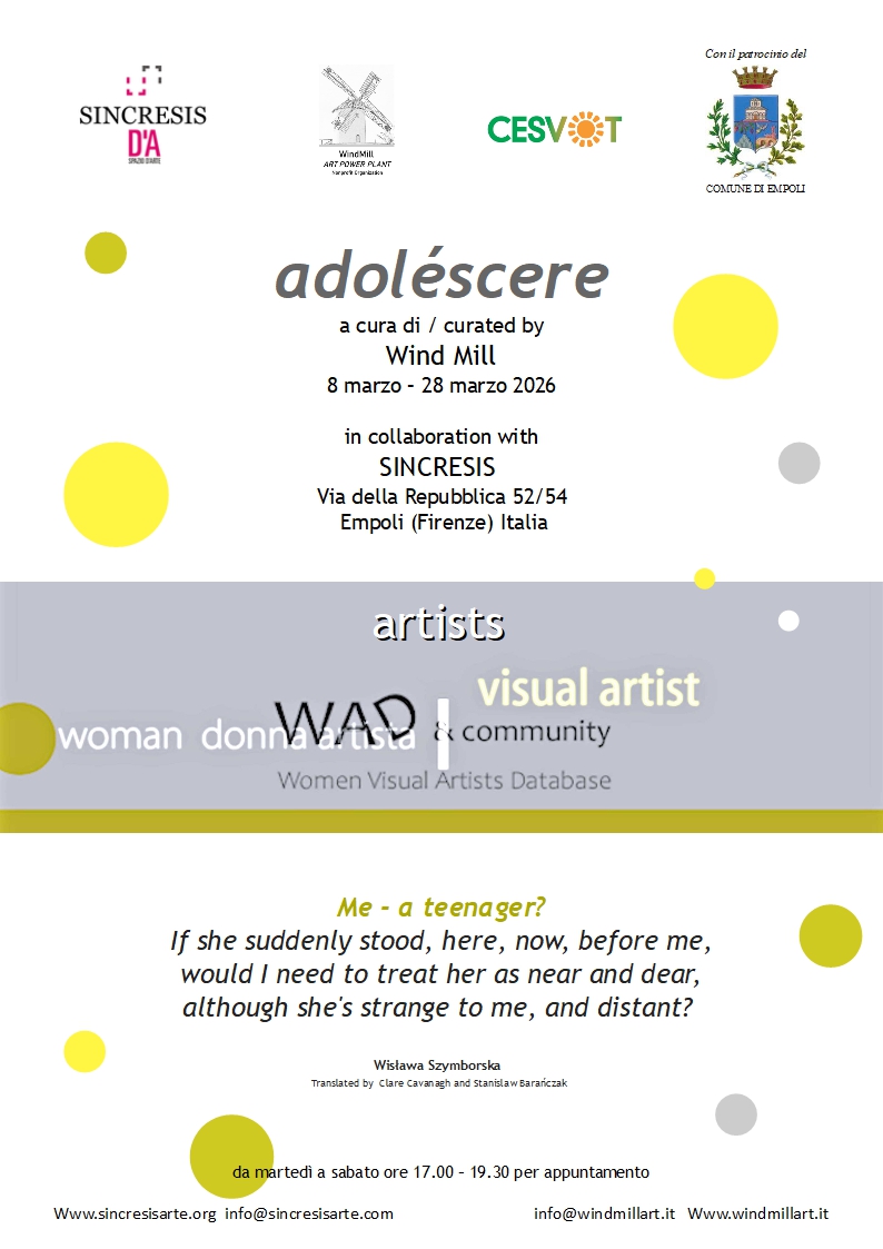 L’associazione Sincresis di Empoli accoglie nei propri spazi il progetto espositivo sul tema della adolescenza ispirando le opere create da 122 artiste del Women Visual Artists Database provenienti da tutto il mondo. Ogni artista propone una opera ed un testo, una mostra da vedere e leggere.