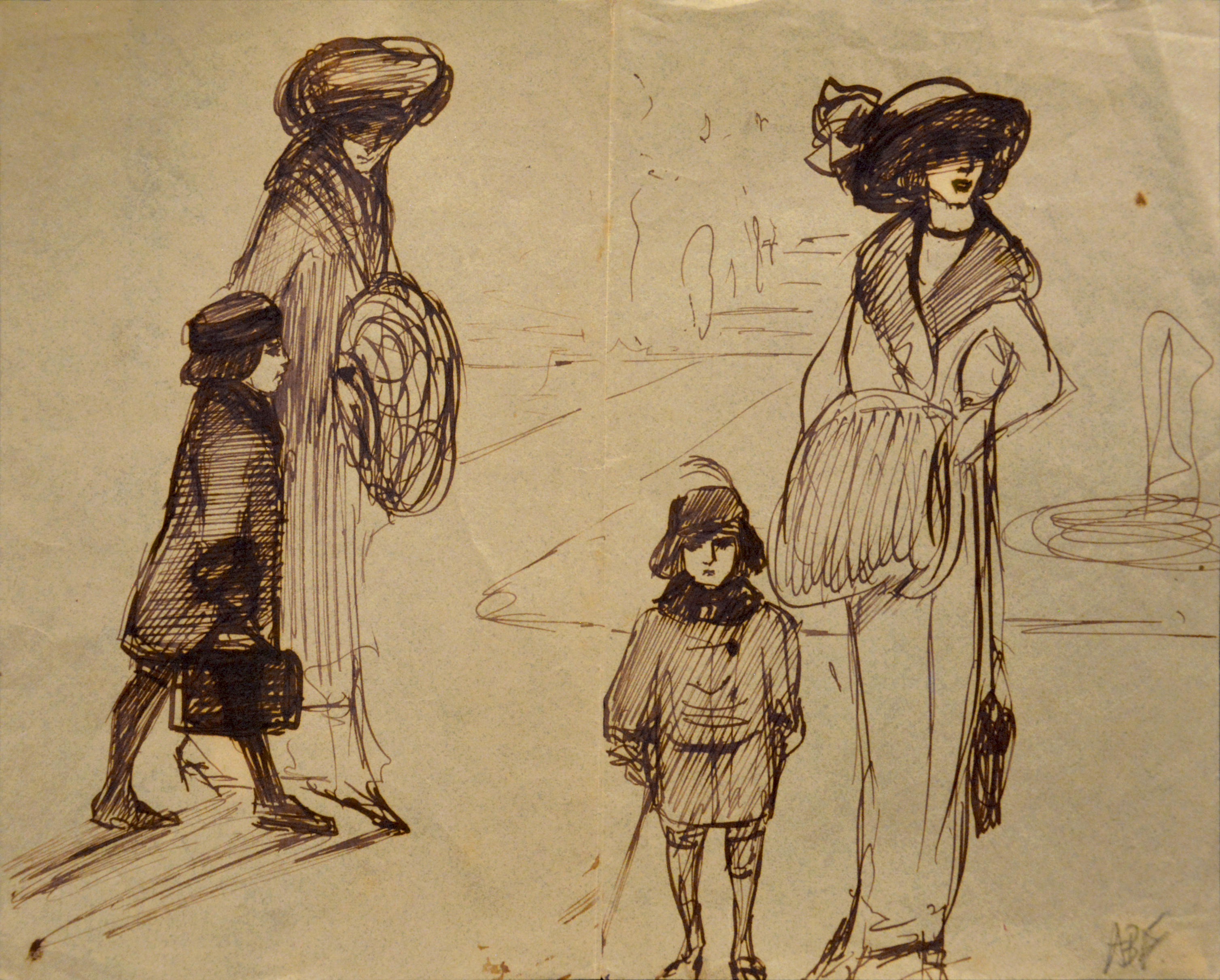 Adriana Bisi Fabbri (1881-1918) nasce a Ferrara dove frequenta la scuola del pittore Nicola Laurenti e conosce il futuro marito e giornalista Giannetto Bisi. Si trasferisce a Padova, ospite di sua zia Cecilia Forlani, madre di Umberto Boccioni; successivamente a Milano, dove compie studi di pittura e arricchisce la propria formazione da autodidatta frequentando gli studi di Gaetano Previati e Luigi Conconi. Nel 1908 esordisce con due disegni alla Seconda Esposizione Quadriennale di Torino. Nel 1911 partecipa alla mostra internazionale di umorismo organizzata al Castello di Rivoli ed è premiata con la medaglia di bronzo; nello stesso anno è invitata alla Prima Esposizione d'Arte Libera organizzata a Milano da Umberto Boccioni con altri futuristi e inaugura a Roma la sua prima personale nelle sale del Lyceum di Palazzo Torlonia. Durante il soggiorno nella capitale incontra i futuristi Luciano Folgore e Giacomo Balla. Nel 1913 Adriana Bisi Fabbri partecipa all'Esposizione d'arte umoristica di Bergamo, per la quale disegna la cartolina e il grande manifesto. Nel 1914, su invito di Leonardo Dudreville, aderisce ed espone con il gruppo Nuove Tendenze. Durante il primo conflitto mondiale molti sui disegni a sfondo politico sono pubblicati sul giornale “Il Popolo d'Italia”; collabora inoltre con “La Domenica Illustrata” ed esegue figurini per la casa di moda fondata da Domenico Ventura.